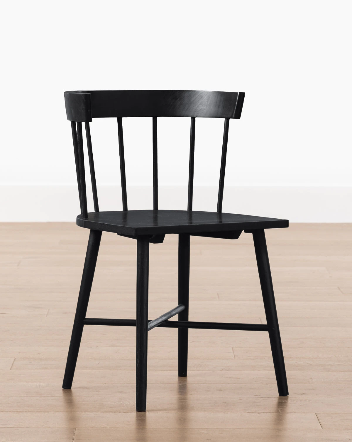 When we designed the Reeves Chair, we wanted to mesh contemporary and traditional styles seamlessly, and we think we did just that! From the spindles to the architectural base finished off with tapered legs, this chair redefines classic design through its thoughtful attention to detail. Crafted from solid, kiln-dried oak and finished in a modern black hue, this chair adds dimension to your dining room with ease.