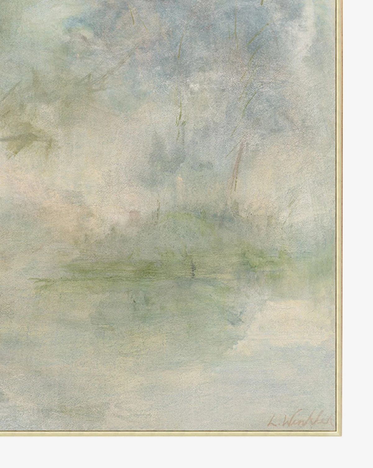Fading is a giclee print on canvas in a cool palette of greens and blues. Its subtle forest scene is intriguing and peaceful, lending a soft touch to your space. Framed in silver-finished wood, the artist-enhanced piece brings gallery quality materials and presentation to your space. Â