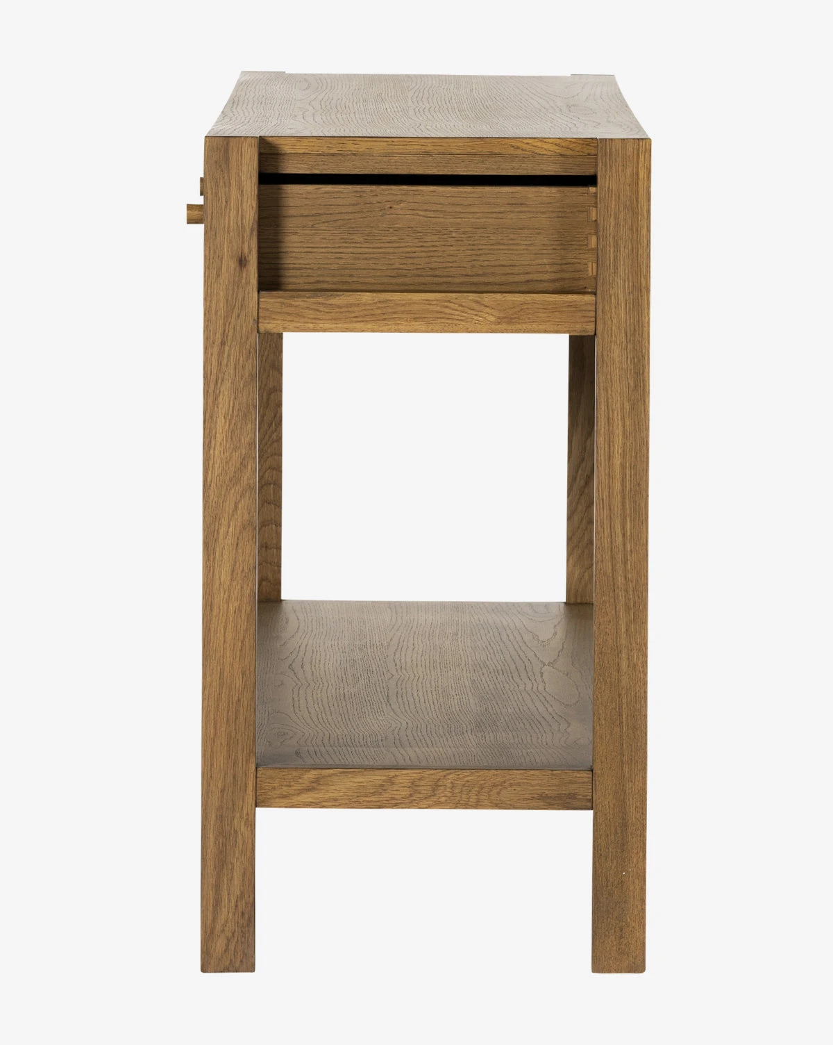 With a traditionally inspired style, the Farrow Console is made from oak in a tawny oak finish. Simple round wood pulls on the drawer add to the sophisticated yet rustic feel of the console, allowing it to be the perfect foundation for entryway vignettes.