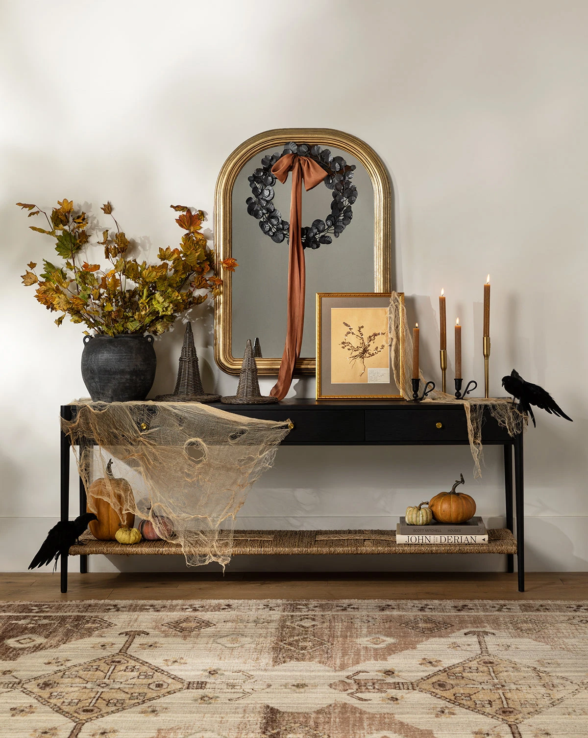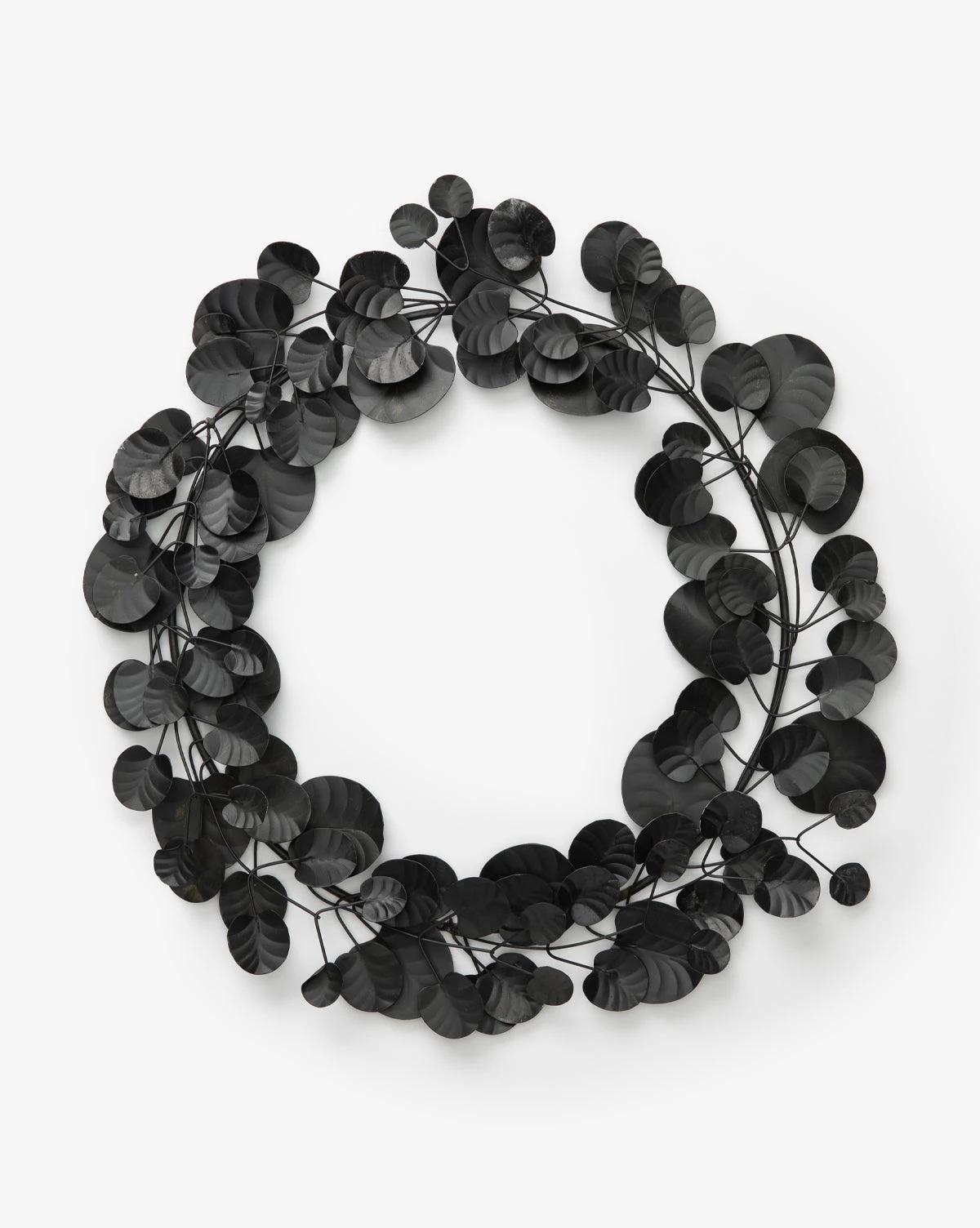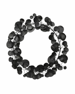 The Faux Black Eucalyptus Wreath is playful and full of moody personality. Its black iron eucalyptus leaves bring a graceful detail to your seasonal decor and the layering of the varied leaves make a full-bodied statement wherever it is placed.