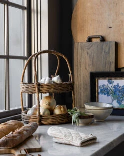 The Fordham Board is crafted from solid oak wood with a water-based stain. With hand-carved handles, the detail and craftsmanship of this serving board bring a comforting feel to your kitchen. The natural wood grain adds a beautiful background to charcuterie or bread, elevating your hosting experience or adding a rustic detail to countertops.