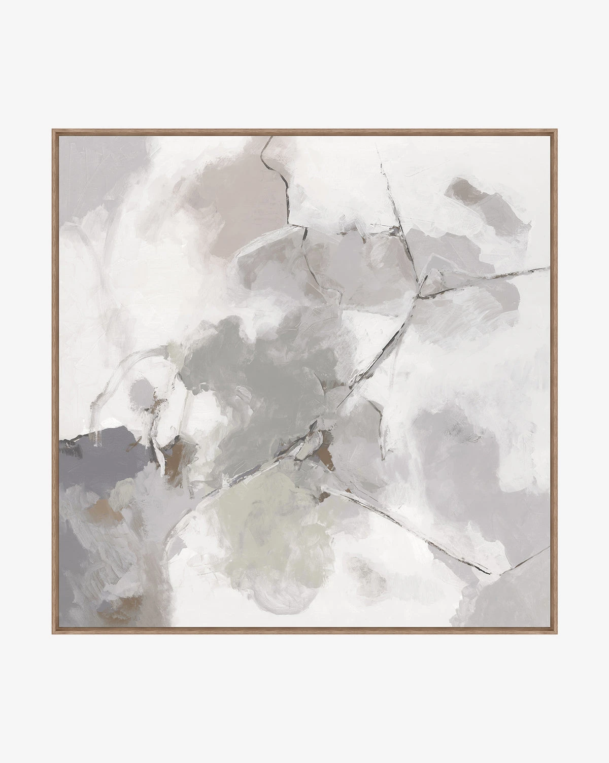 With a dramatic composition, Fractured II takes inspiration from nature, using a calming cool and neutral palette. Framed within natural wood, the piece elevates your decor with its details and museum-quality materials.Â