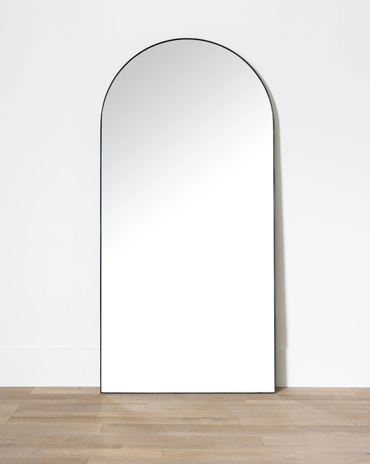 The striking Gala Floor Mirror is nearly seven feet in height, giving both simplicity and magnificence to bedrooms or common living spaces. Its domed top gives this large mirror deliberate softness, and its delicate trim adds elegance by framing the mirror’s eye-catching scale.
