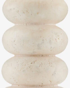 Balanced and sculptural, the Girault Table Lamp is made from beautiful travertine with a finial and hardware finished in antique brass. Its round and stacked base adds dimension to the bone linen shade, while the detail in the natural travertine brings organic texture to your decor.