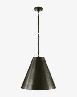 With its modern shade and five brilliant finishes, the Goodman Pendant makes it easy to update home lighting. Bring cool tones to your space with the antique nickel finish, or add warmth with its hand-rubbed antique brass finish.