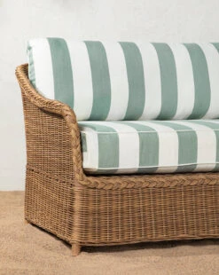 Crafted from woven wicker around an elegant metal frame, the Haviland Outdoor Sofa with Striped Cushions offers organic aesthetic and weather resistance to outdoor lounging. Complete with boxed seat cushions and knife edged back cushions, we designed this sofa to bring enduring comfort and beauty to your outdoor spaces.