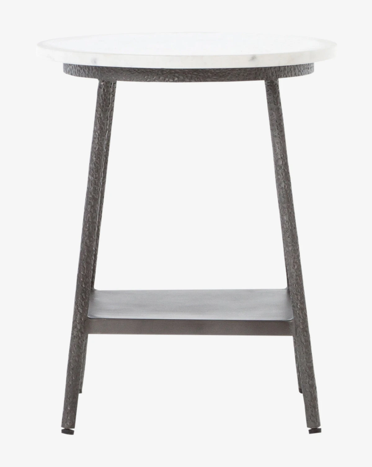 A simple silhouette gets an update with contrasting iron and marble materials. Our Heidi Side Table features a hammered gunmetal base with a hand forged feel and sleek white marble top.