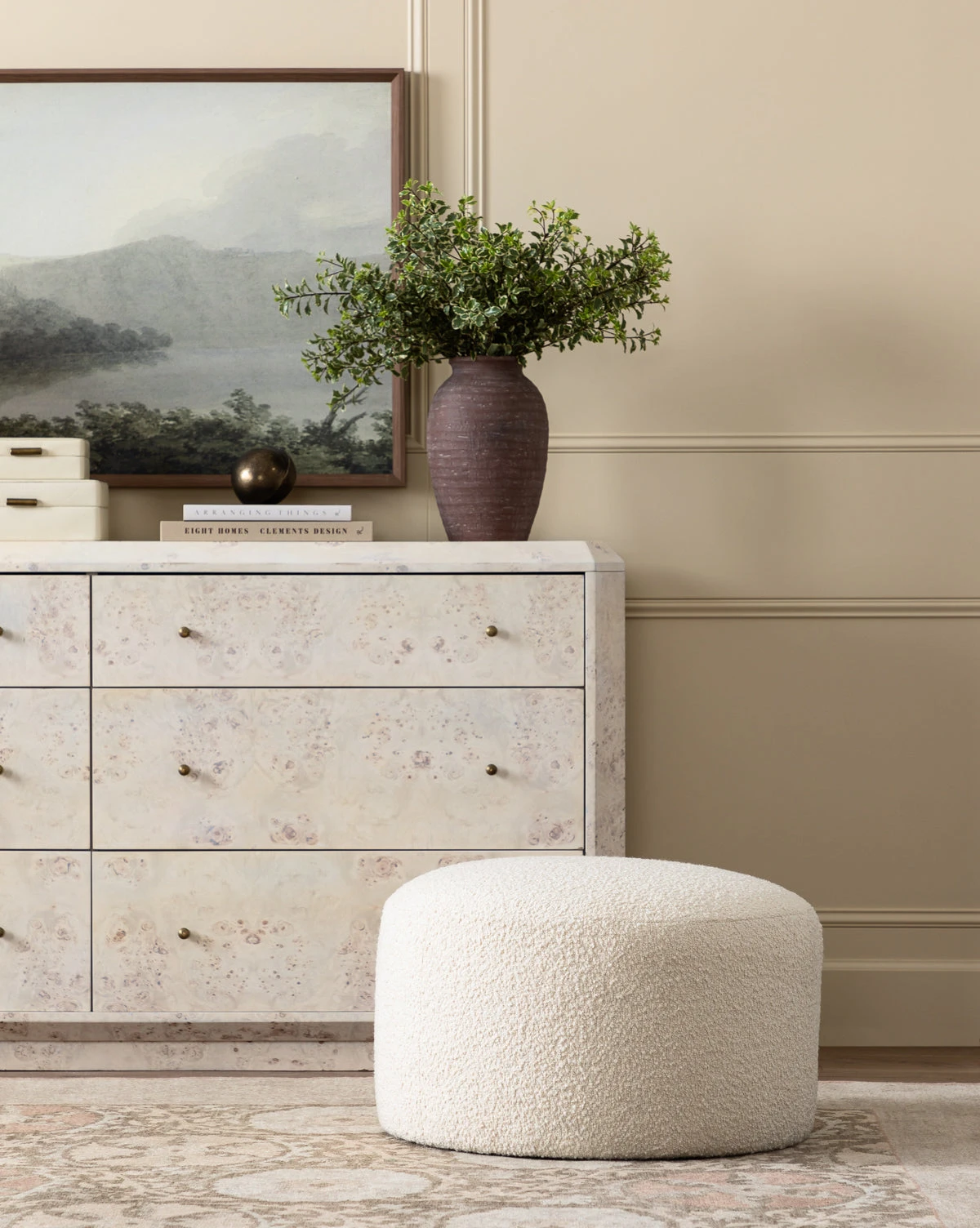 In a playfully round form, our Hemlock Upholstered Ottoman brings contemporary simplicity to your home wherever it is styled. We designed the ottoman to be as elegant as it is functional, with a cushioned top that is equally firm and comfortable. Customize this made-to-order piece with an array of high-quality fabric choices to elevate your space.