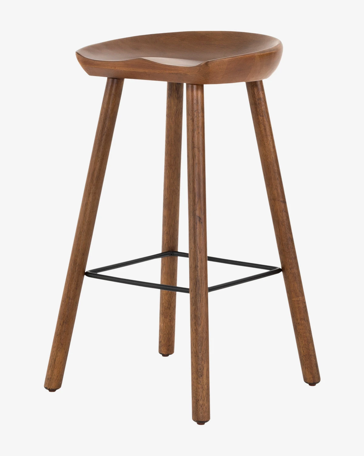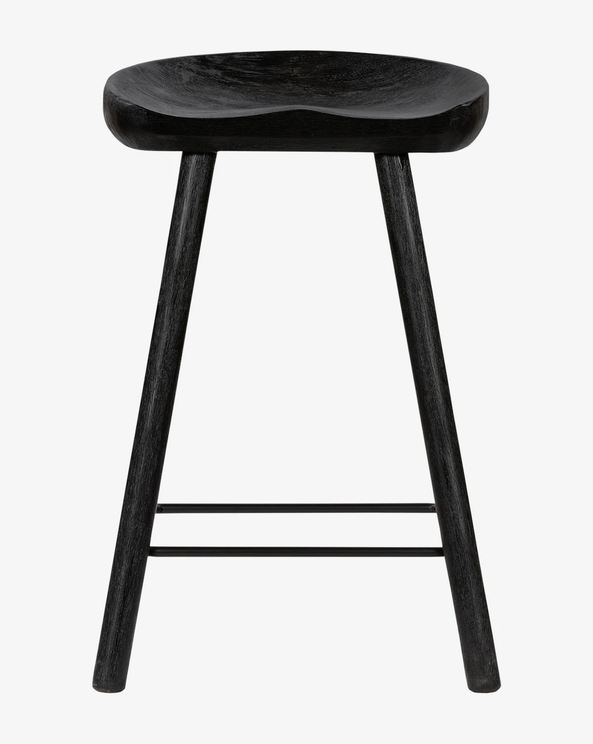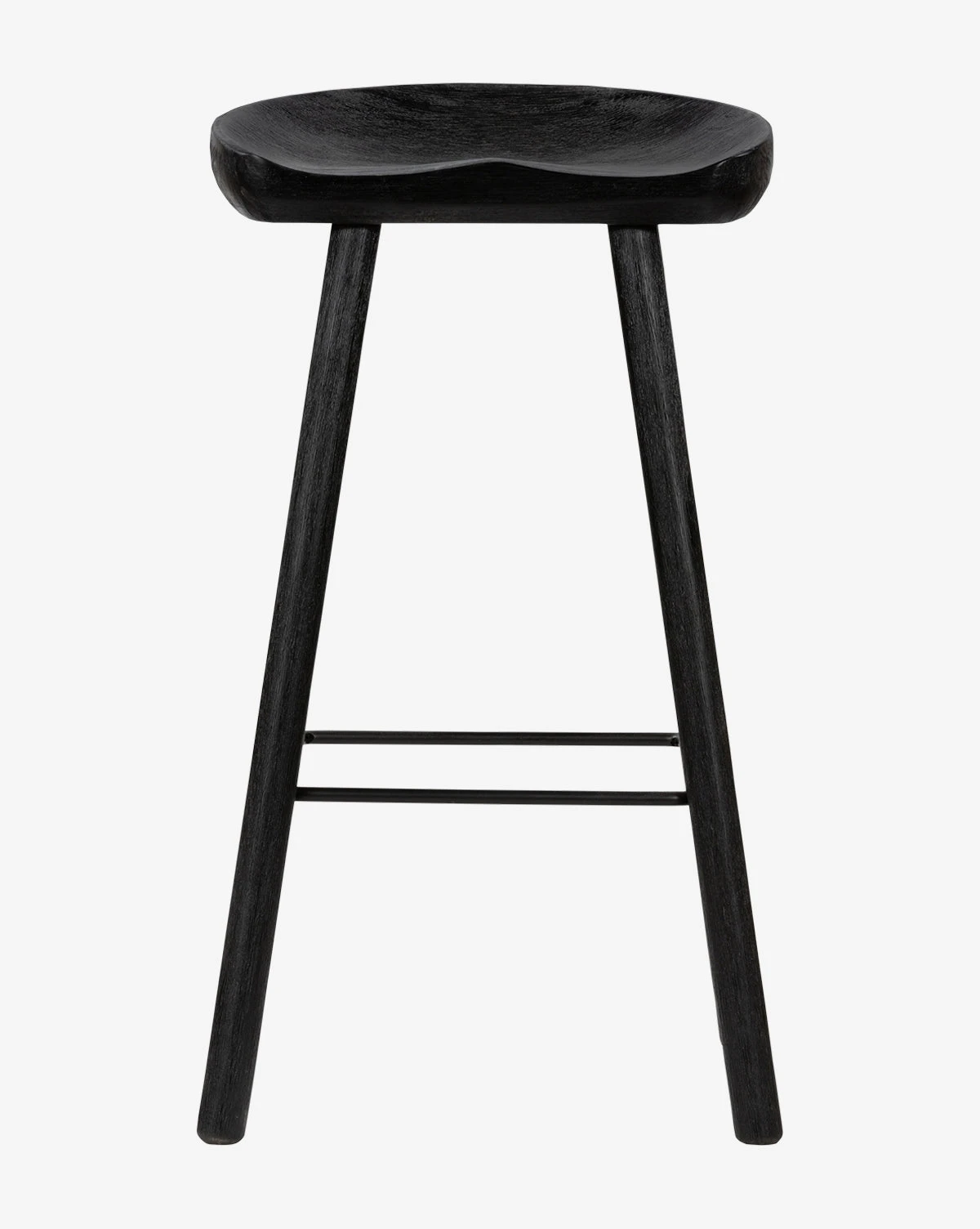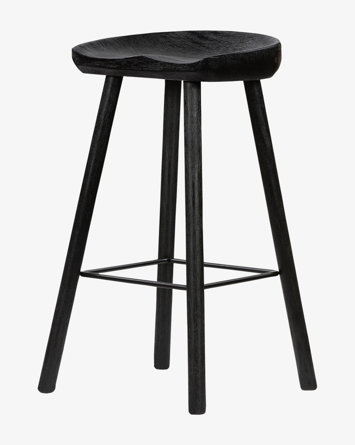 An updated take on the simple counter stool, the Herman Stool is sculpted and straightforward. Its solid wood frame comes in a variety of finishes, each complemented with iron stretchers that balance the piece, and its sculpted seat allows for both comfort and visual interest.
