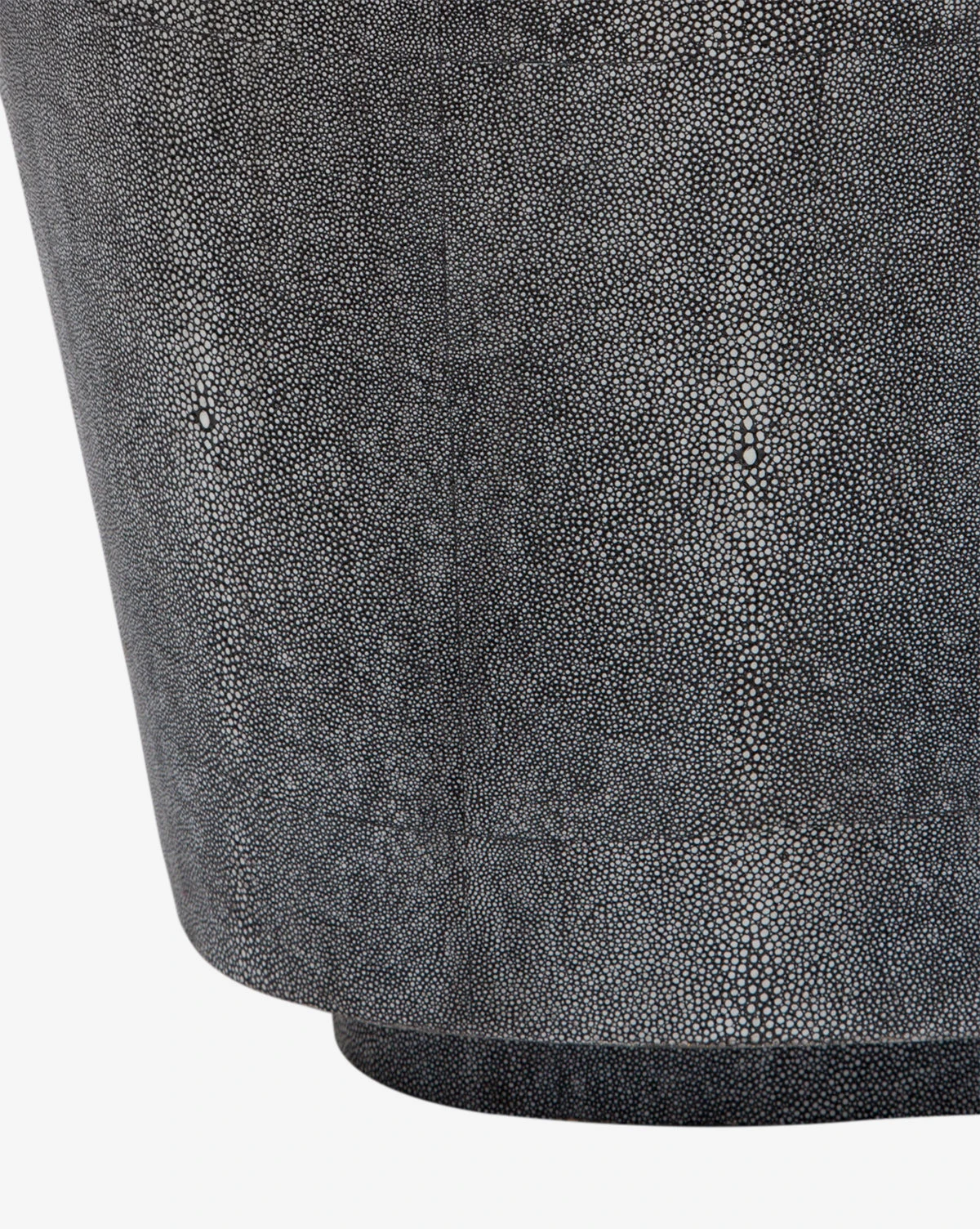 The Hughes Coffee Table brings a unique balance of weighty presence and elegant detail to your space. Its sculptural form is covered in hand-stamped faux shagreen with a sand finish, bringing its abstract and textural look to living rooms.