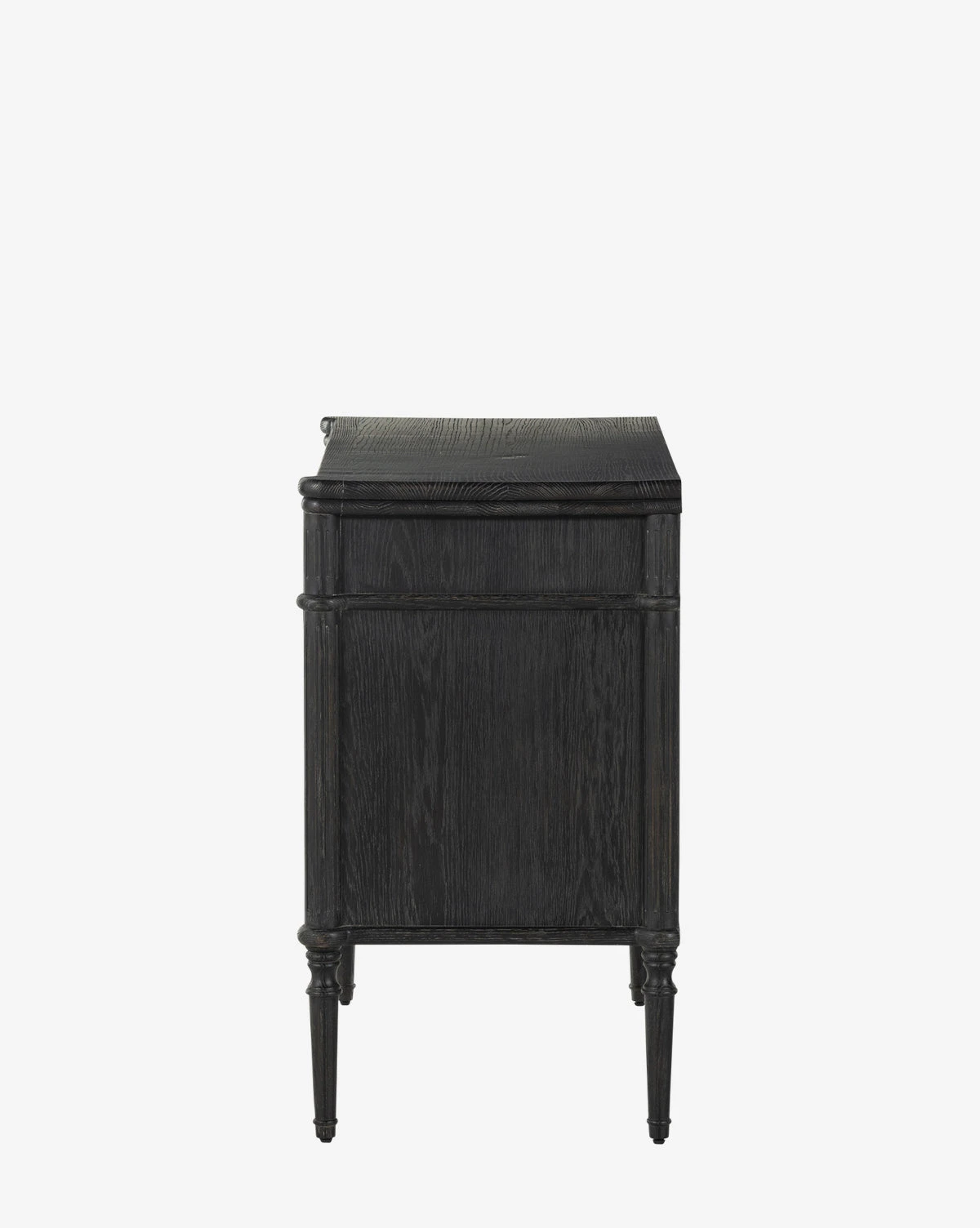 A traditional design and elegant details in the frame bring a vintage feel to modern bedroom styling with the Humphrey Chest. A slim top drawer and two standard and spacious drawers give functionality to the chest, while tapered legs and simple oval handles bring comforting detail to your space.