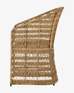 Crafted from natural rattan on a sleek metal frame, the Huson Dining Chair invites you to the table with its barrel shape and coastal aesthetic. The rattan is intricately woven, adding detail and intrigue to your dining space, while its linen cushion complements the chair’s natural palette.