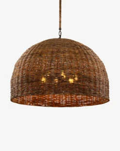 Crafted from intricately woven vine around a bronze-finished metal structure, the Huxley Chandelier brings texture and movement to your space. Its seamless mix of materials adds a feeling of refinement, while the open chandelier provides warm light wherever it is styled.