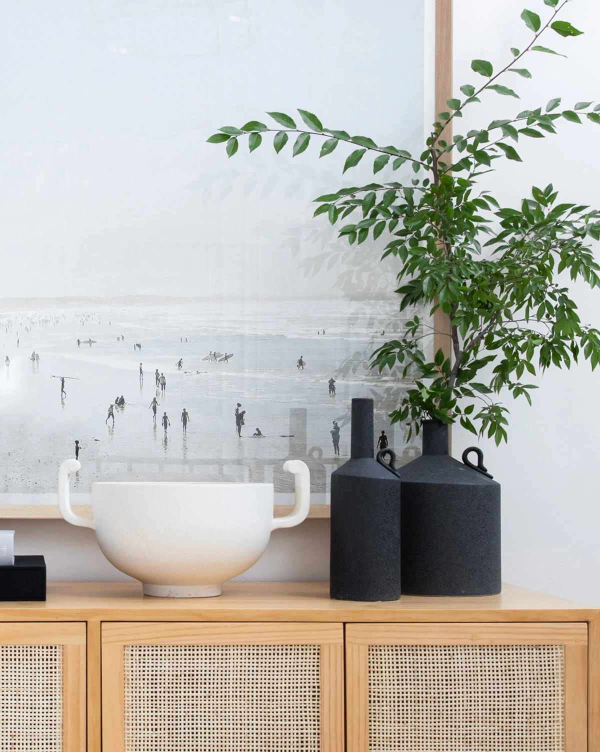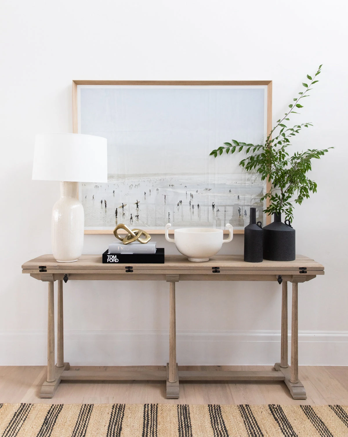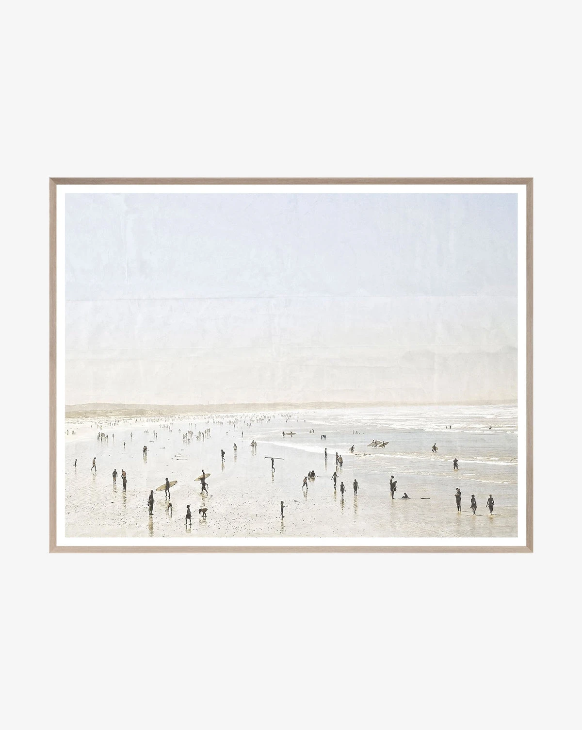 Depicting a warm summer’s day, sandy beaches and calm waves bring serenity into your space. Coastal, but transitional enough to work in any space, this piece is finished with a simple wooden frame in complementing sand-colored tones.