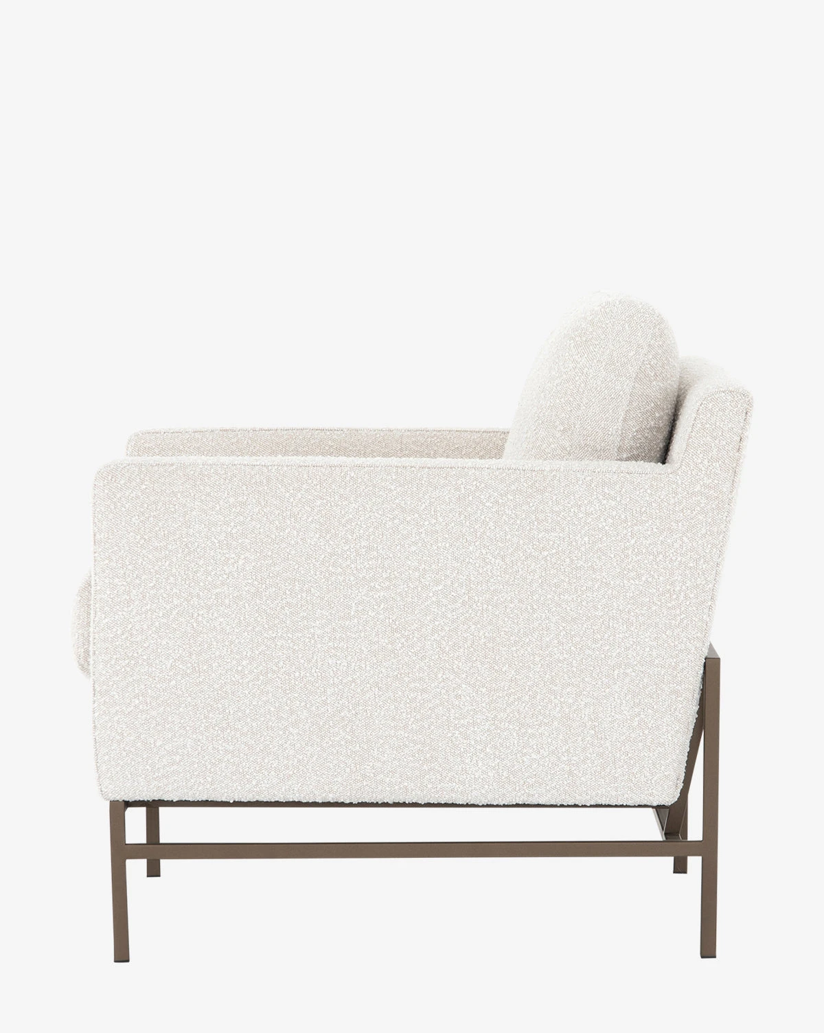 Plush and luxurious, the Ivan Lounge Chair is a modern take on the traditional armchair. Its upholstered fabric cushions are thick and soft, and supported by bronze-finished iron base that adds a balanced mix of material.