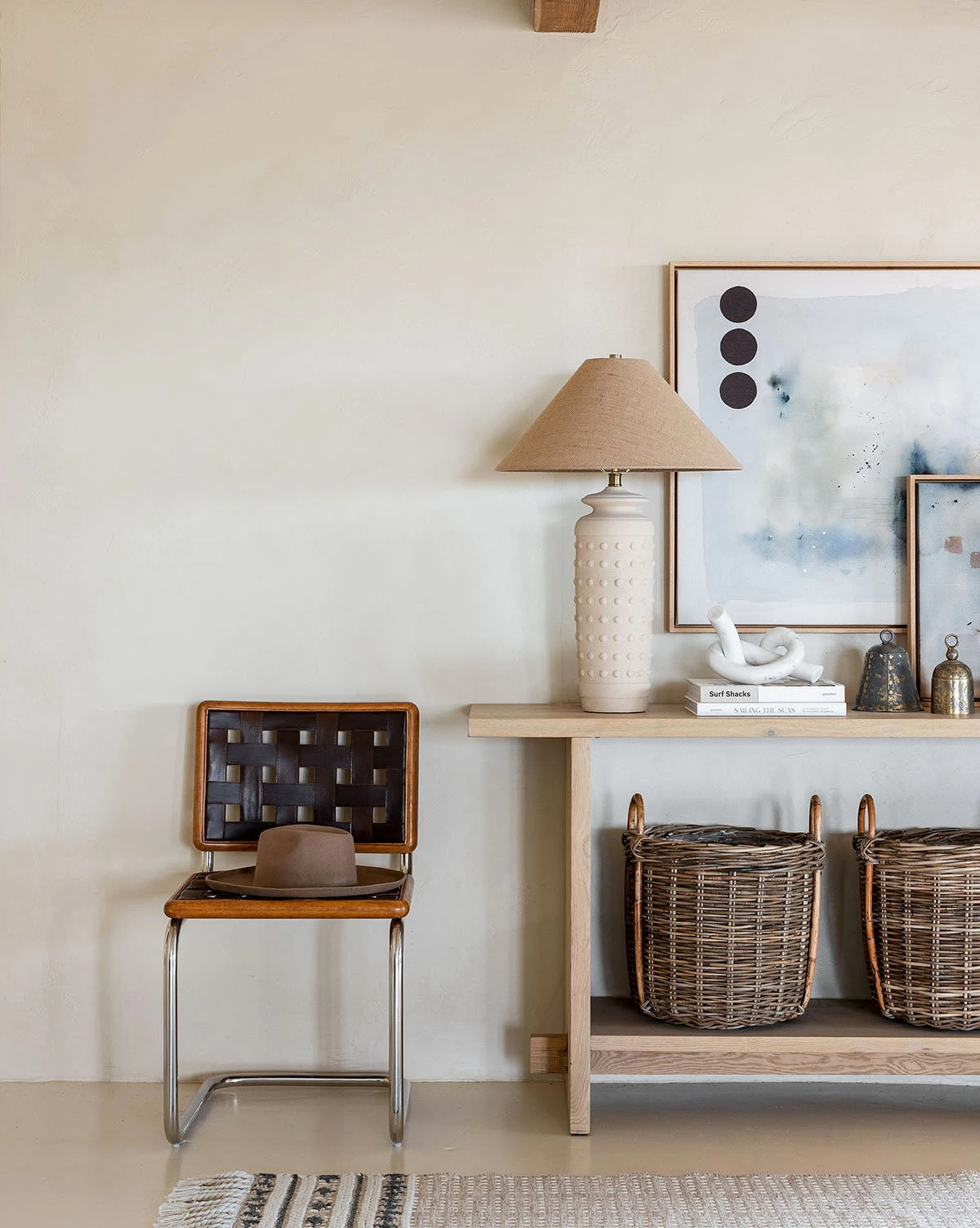 Mixed materials are on full display with the innovative form of the Jacoby Chair. Detailed woven leather is inlaid in a solid hardwood frame and elevated by a tubular steel base for a look that draws the eye from any angle. Added to a dining table, this chair elevates your home with a modern and relaxed feel.