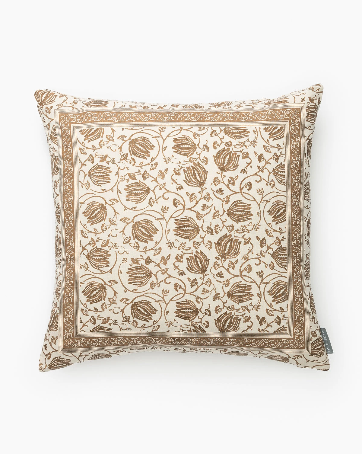 With neutral browns and flowers, the muted palette of the Jolie Floral Pillow Cover brings softness to your pillow vignettes. Its floral pattern is both intricate and whimsical and is framed with a classic border full of vine-like details that adds character to your display. Â