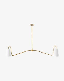 In a minimal elegant design, our Jonas Linear Chandelier has subtly curved arms in two striking finishes. Its narrow linen shades complement the modern frame and illuminate your space with its sleek angled construction.