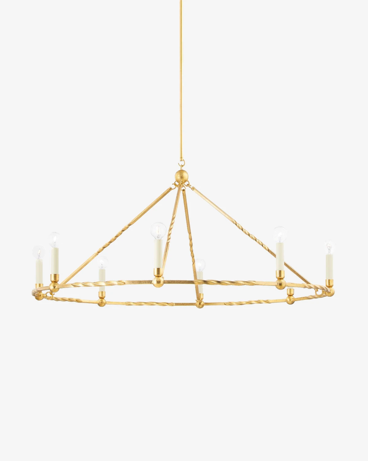 With simple yet beautiful candelabra bulbs that complement the curved detail on its frame, the Josephine Chandelier brings modern refinement to your decor. The vintage gold leaf finish on the chandelier makes an elegant statement in your space.