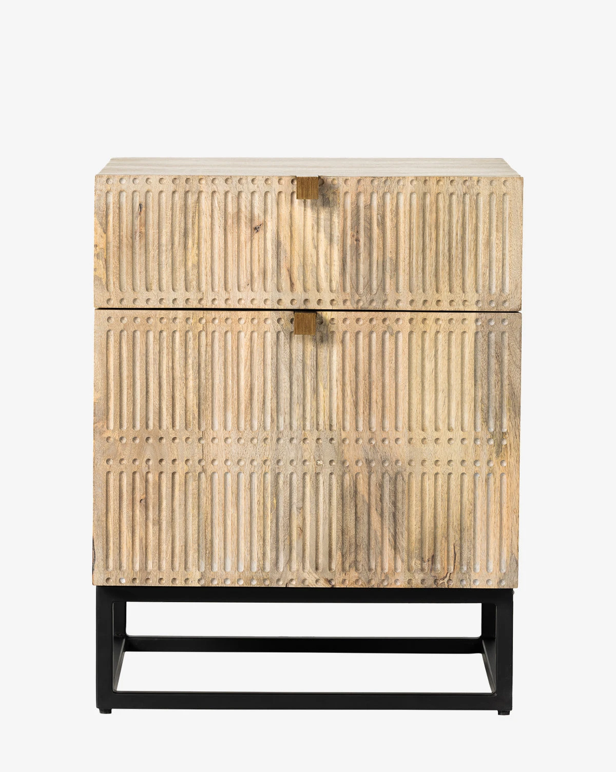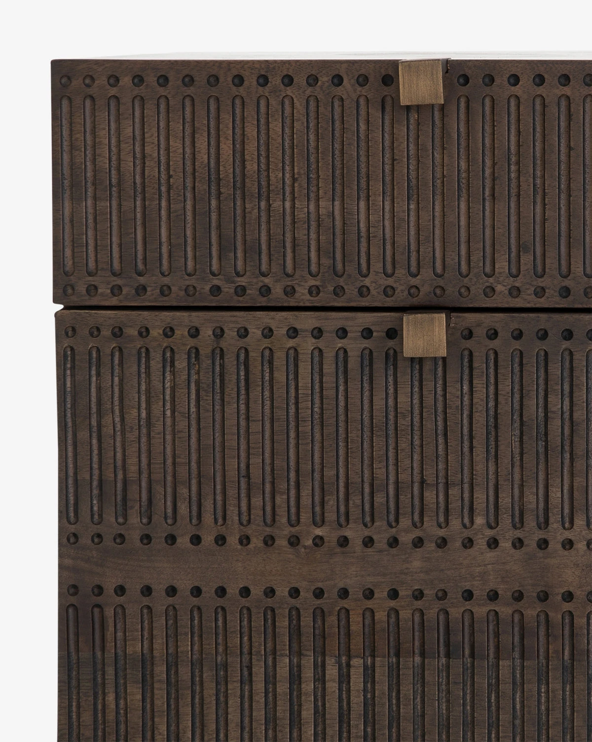 Unique linear carving adds creative detail to the straightforward structure of the Kadon Filing Cabinet. Crafted from mango wood in either a light wash or vintage brown finish, the texture and craftsmanship of the cabinet bring intrigue to your decor.