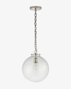 This traditional round glass globe pendant will illuminate your space with its stunning glow. We love that the chain link gives just enough edge to the shine of the glass.