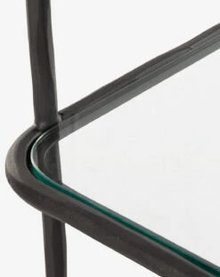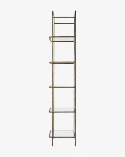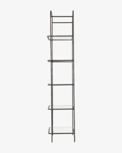 Sleek and open, the Kellen Bookcase is a sophisticated, strong piece crafted from iron in either a brass or gunmetal finish. Its simple frame holds tempered glass shelving, perfect styling everything from books to decorative pieces.