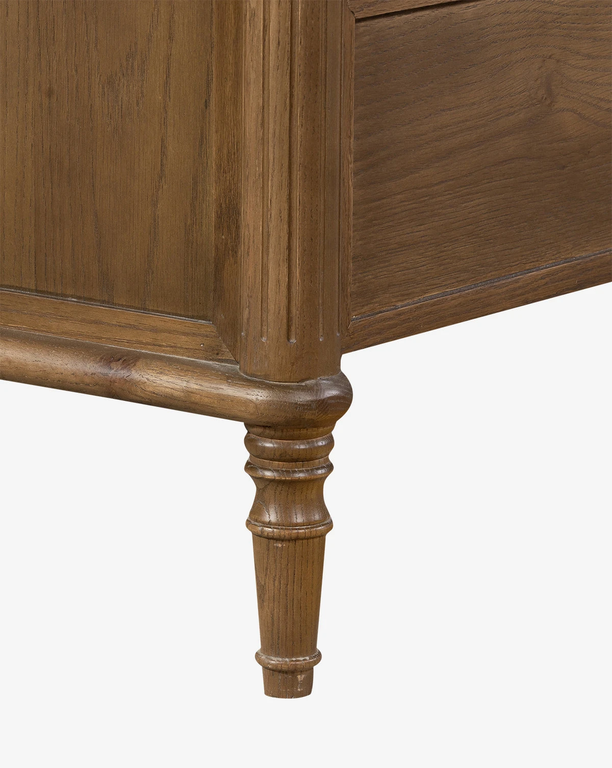 Simple yet elegant, the Kendrick Bed brings a modern feel to a traditional design. Crafted from oak in a toasted oak finish, the details on the headboard and footboard complement the spindle feet in a beautiful design.