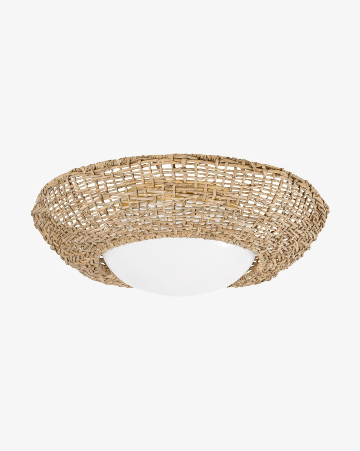 Featuring a streamlined yet organic design and a frame made from handwoven abaca rope, the Killington Flush Mount brings warm light to any room. Displaying an opal glass shade, the fixture is beautifully balanced.