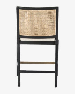 The Landon Stool brings a cool, eclectic mix of modern and retro design to your kitchen island. A brushed ebony nettle wood frame contrasts with a textural inlay of cane creating both dimension and depth, while its high-performance fabric seat brings modern sensibility.