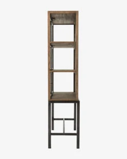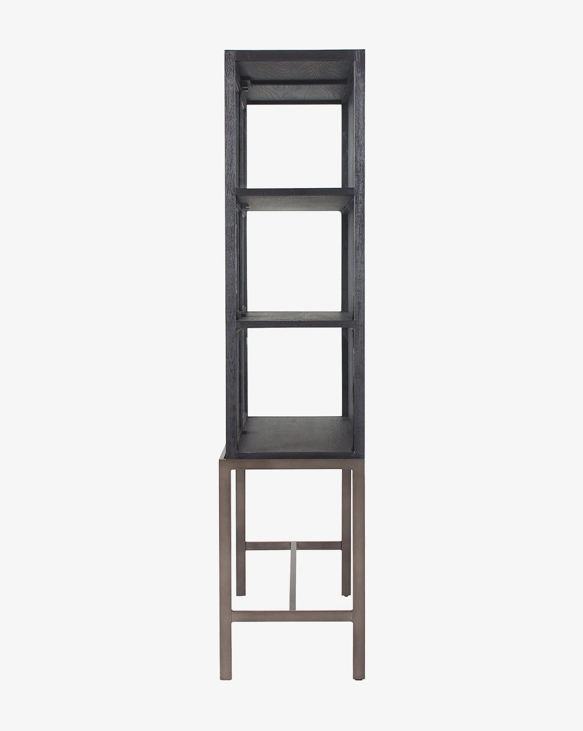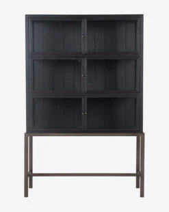 Elevate your home design with the airy form of the Lawley Cabinet. Crafted from drift oak, this simple curio cabinet sits atop a pedestal of waxed, black iron. Glass doors and a traditional natural stain create the perfect home for your treasured pieces.