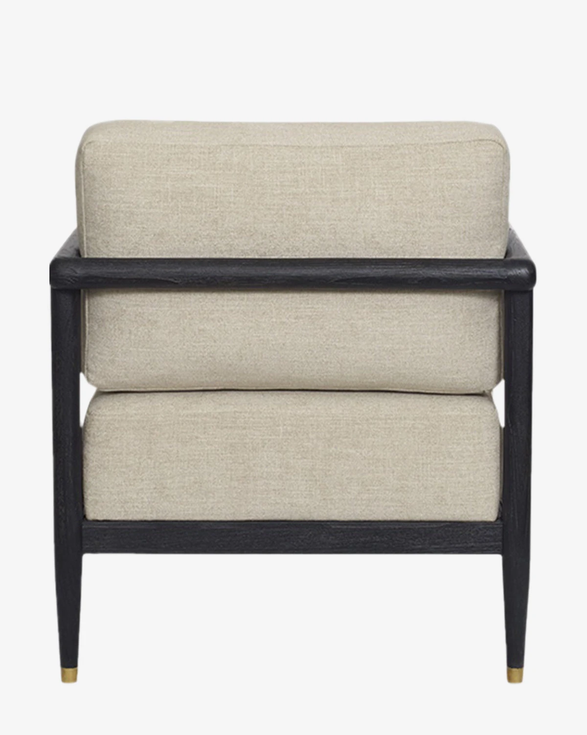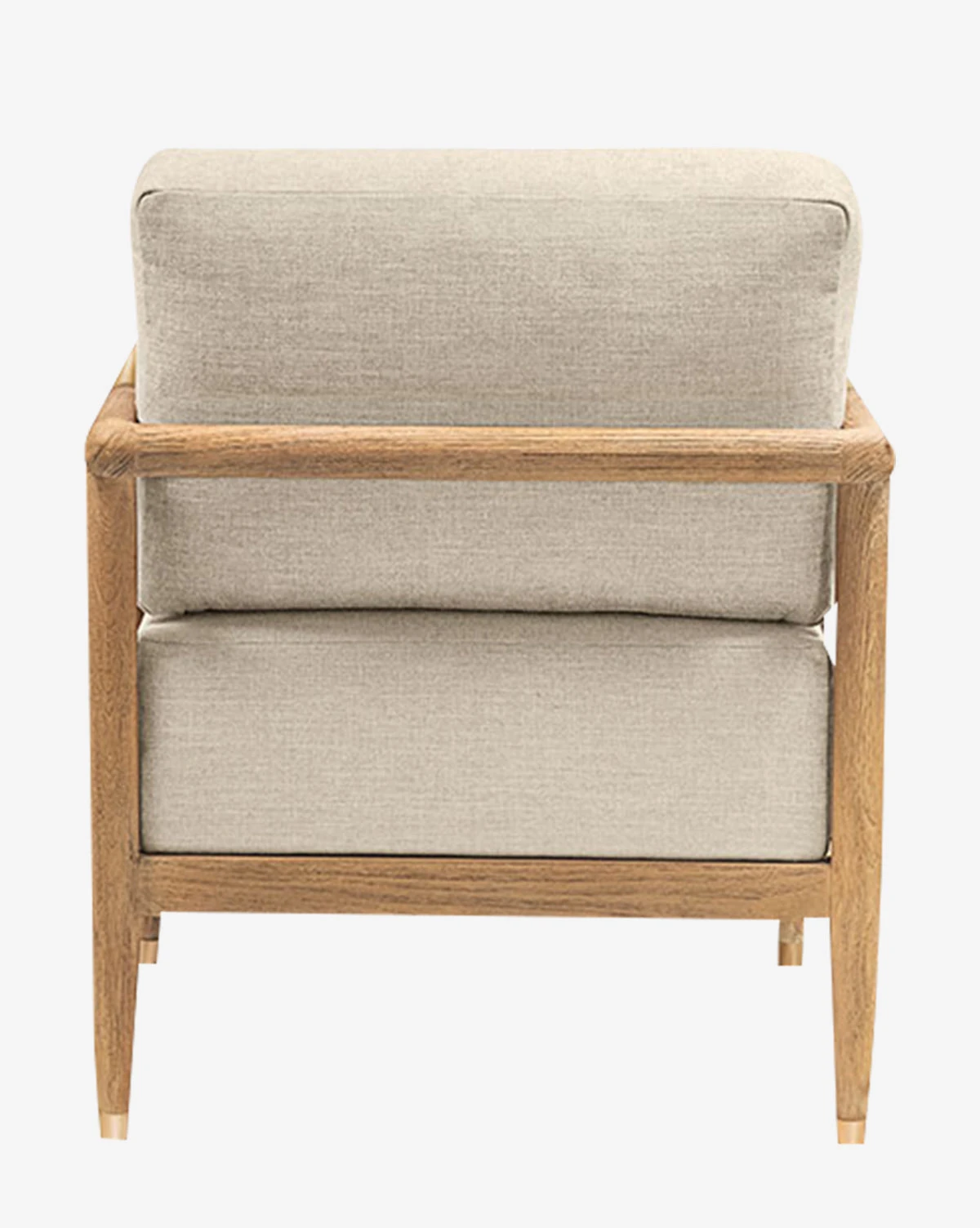 With a timeless tone and form, the Layne Chair is as stylish as it is comfortable. Its solid teak form is finished in a espresso or beach hue, and accented with details of brass, pairing effortlessly with its crypton beach hued fabric. Styled in pairs in your living room, or accenting your favorite reading nook, this chair lends a lived-in feel wherever it’s placed.