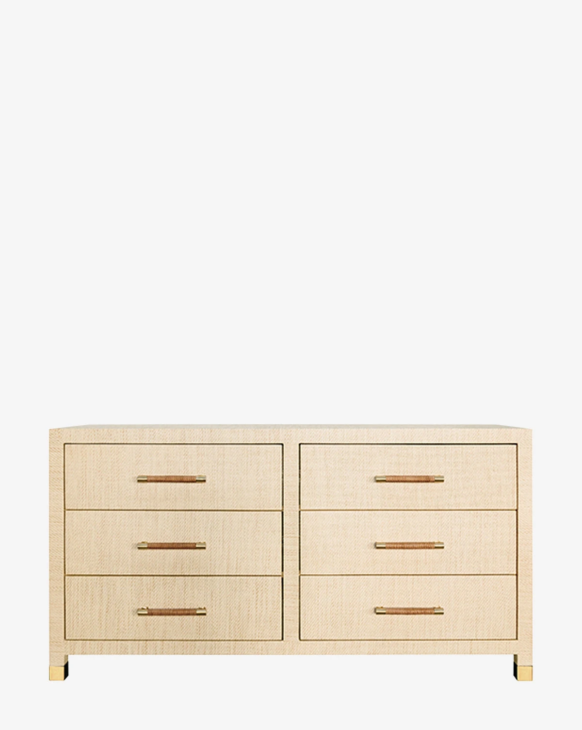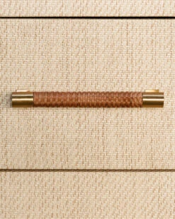 Simple yet elevated, the Leonardo Dresser features stunning details. The six drawers are complete with rattan wrapped handles, complementing its metallic details and straightforward design. Finished in either natural grasscloth or matte white, the wood frame holds spacious drawers for functional storage.