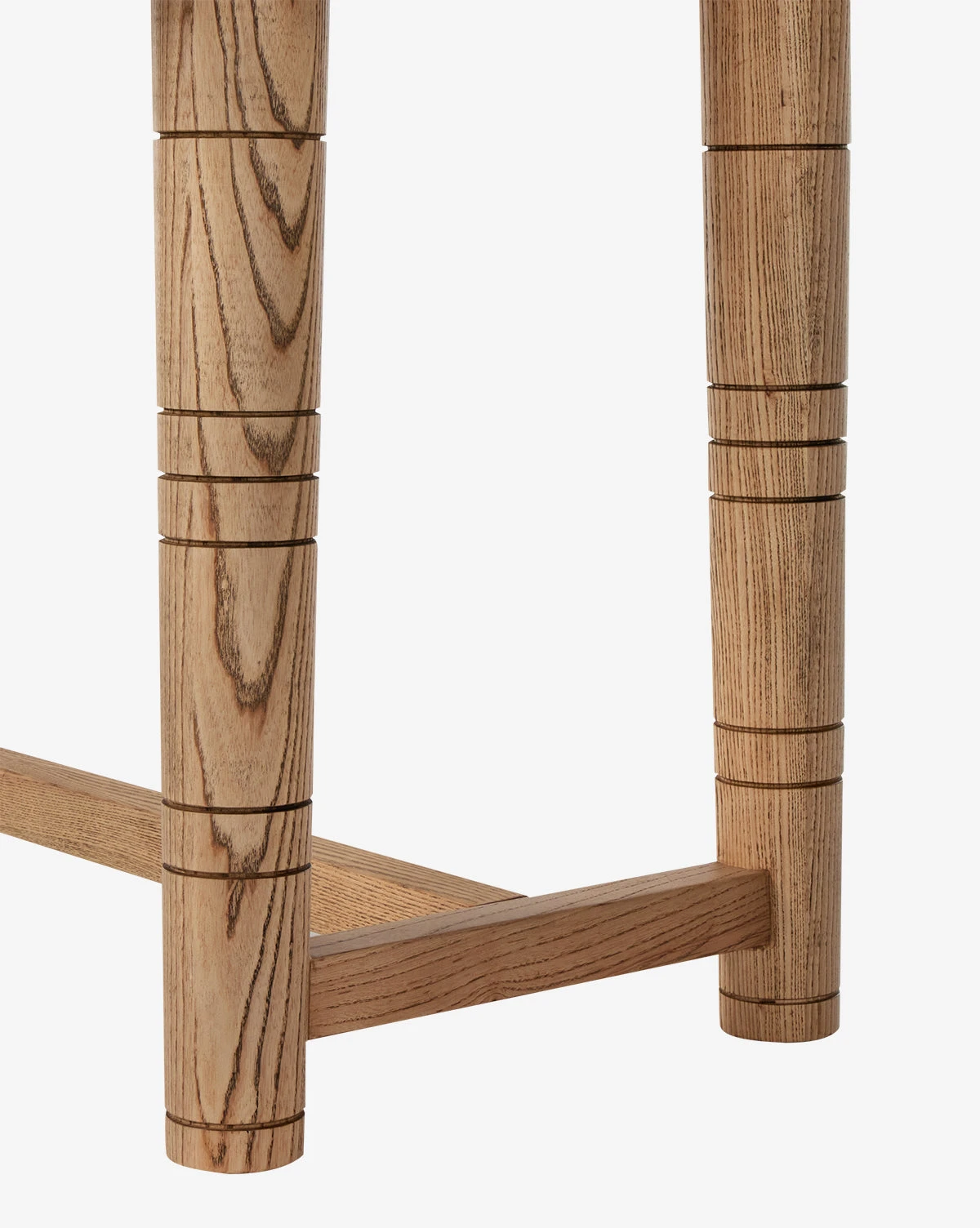 The Leonie Console has unique elements that bring an elevated rustic playfulness to your space. Made of solid ash, the console features routing detail on its legs that bring a modern twist to a classic organic piece.