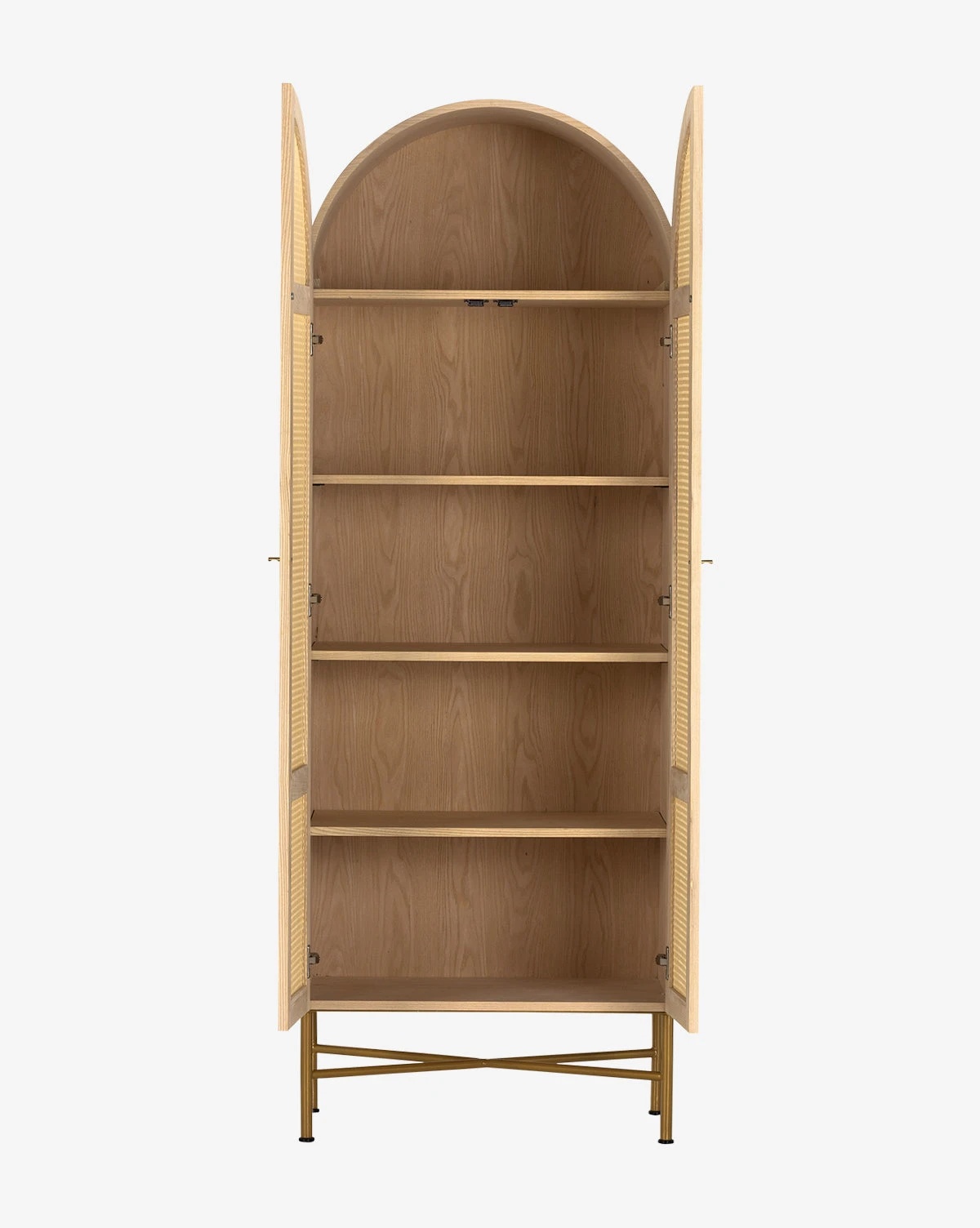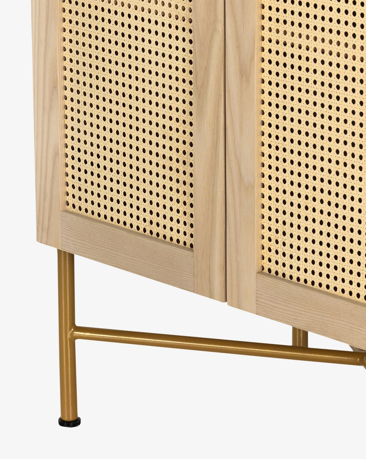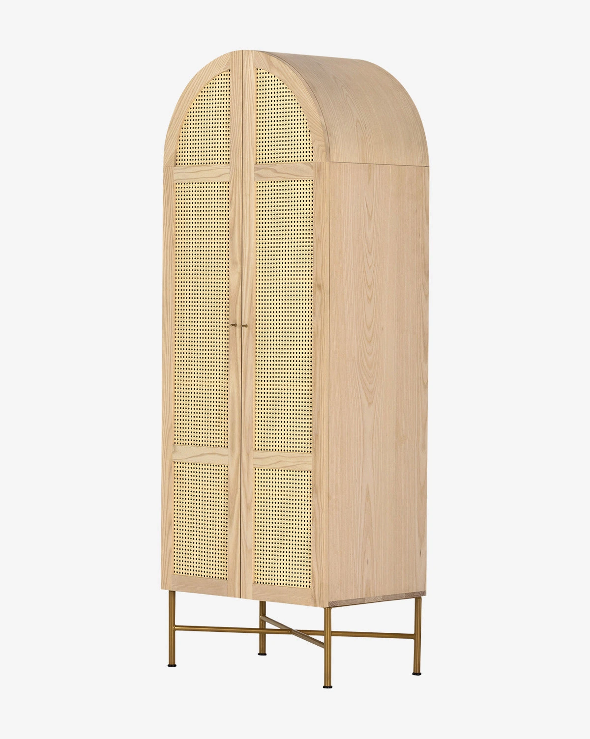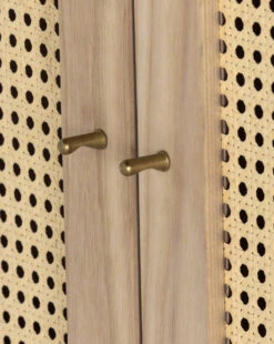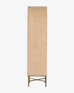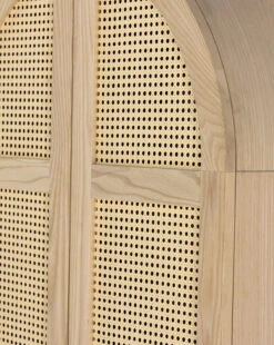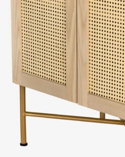 Subtly detailed, the Leonora Cabinet features a beautiful mix of materials. Its natural ash veneer structure frames two cane doors with minimalistic metal hardware. A modern take on a traditional cabinet, the enclosed storage allows for versatility of use.