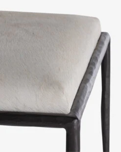 Tactile and elegant the Lilith Stool is crafted with a dreamy mix of materials. With an upholstered seat made from ivory hide and a frame made from tapered forged iron with a gunmetal bronze finish, the stool boasts industrial modern design wherever it is placed.