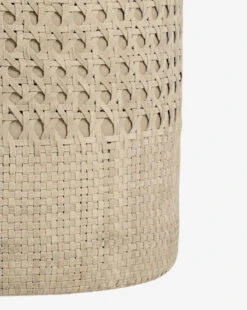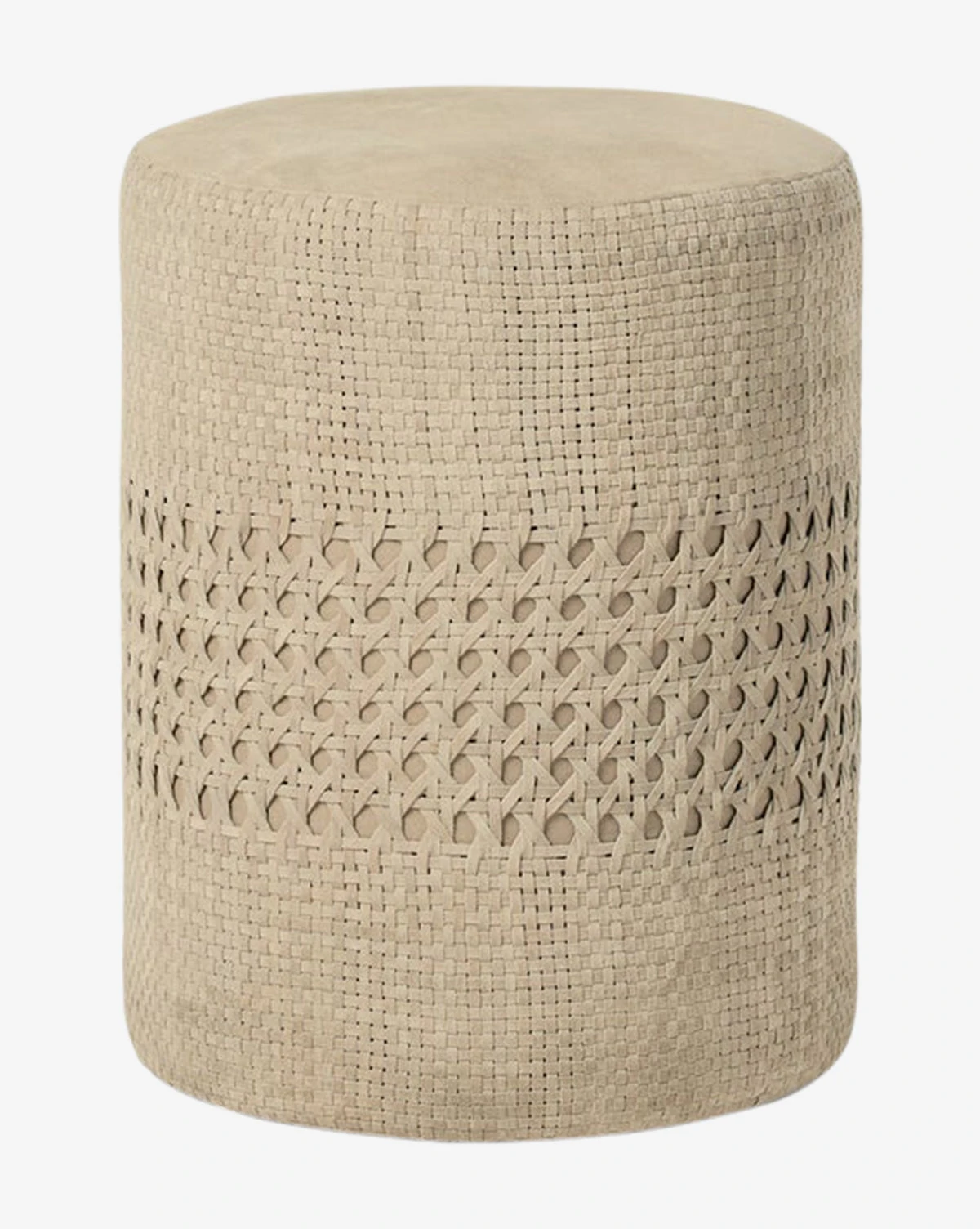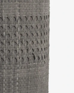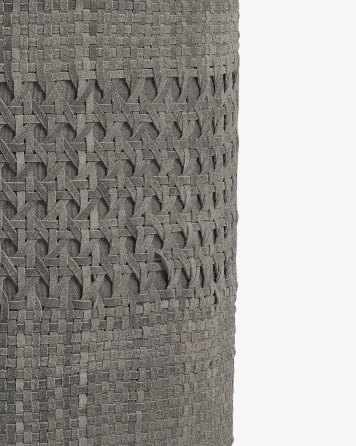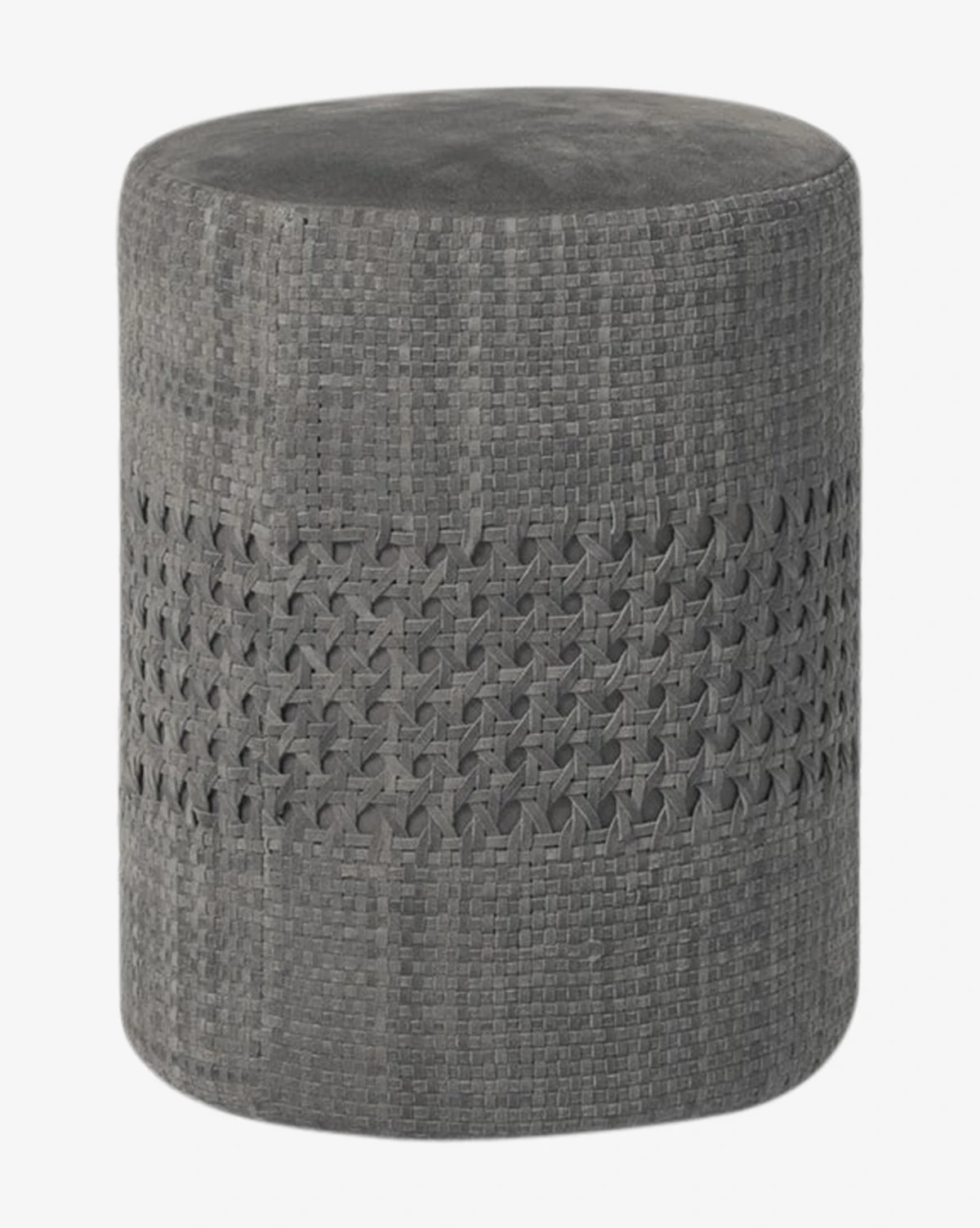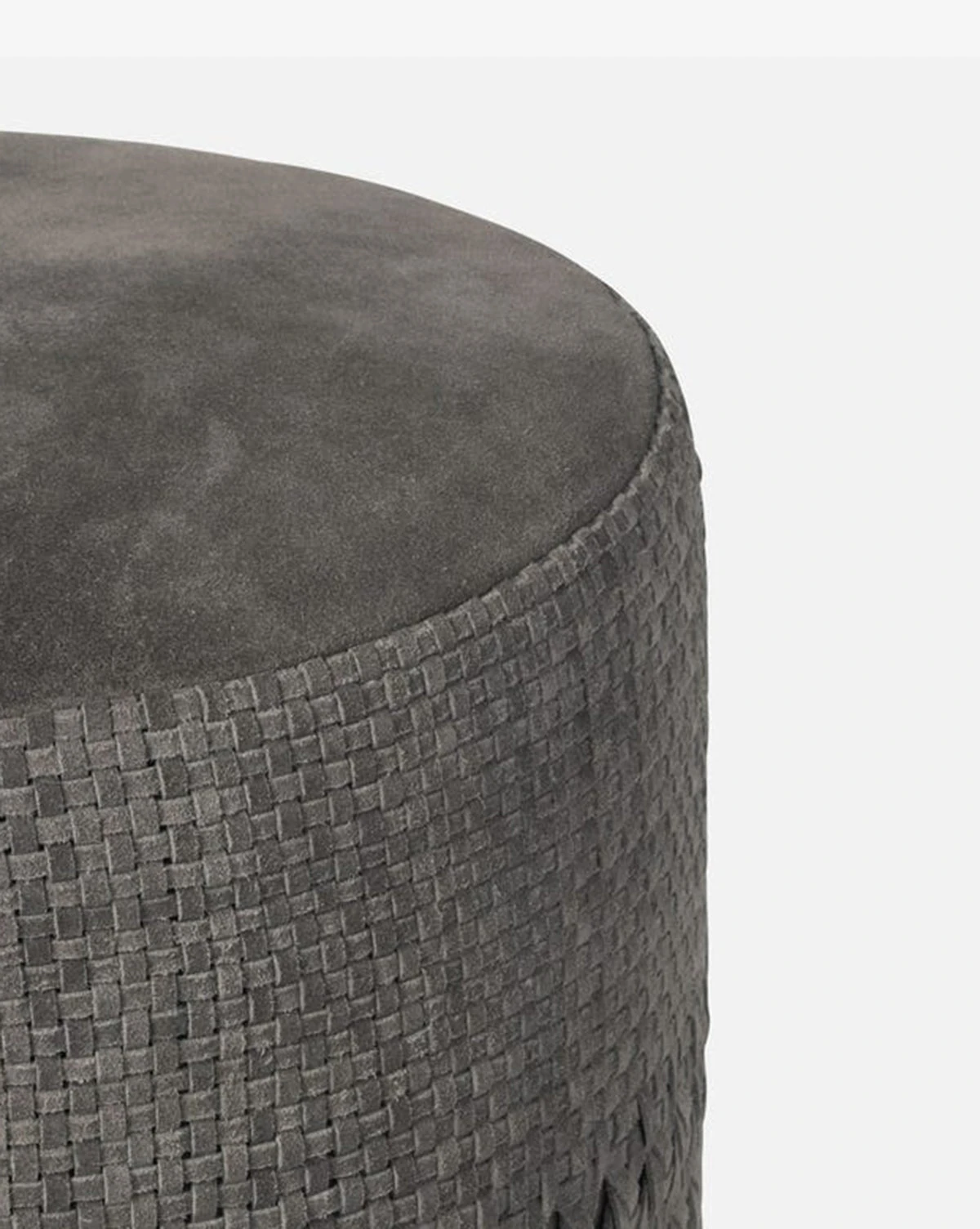 With an intricate woven pattern, the Longmont Suede Ottoman displays caning techniques with its luxurious, hand-woven gray suede. Refined in style and structure, this ottoman enhances the design of gathering areas while adding extra seating and comfort.