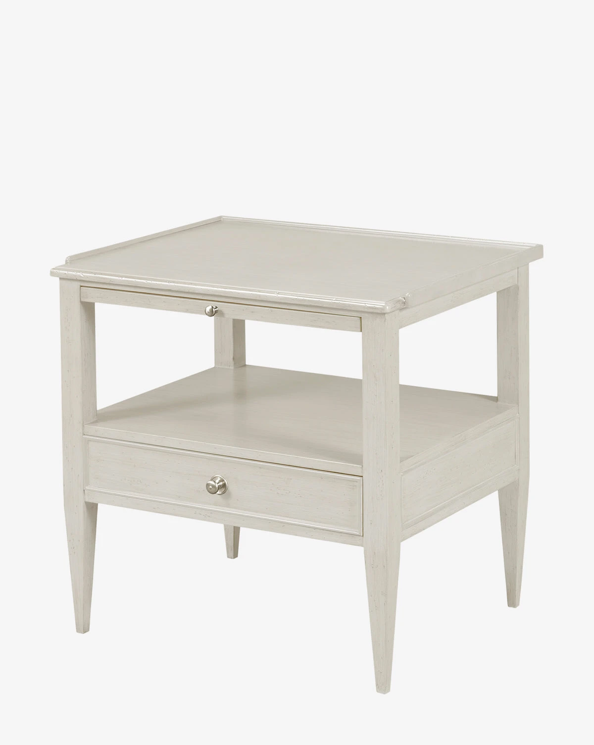 Lending a light and airy feel to your space, the Loren Nightstand presents simple materials in a sophisticated design. With an open shelf and brushed nickel finished hardware, this nightstand is the epitome of function and beauty with its elevated, full storage design.