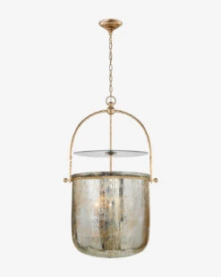 The Lorford Smoke Bell Lantern features the most unique and masterful use of mercury glass we’ve seen.  Held by a structured, aged iron case, the glass brilliantly displays it enticing metal sheen when lit.