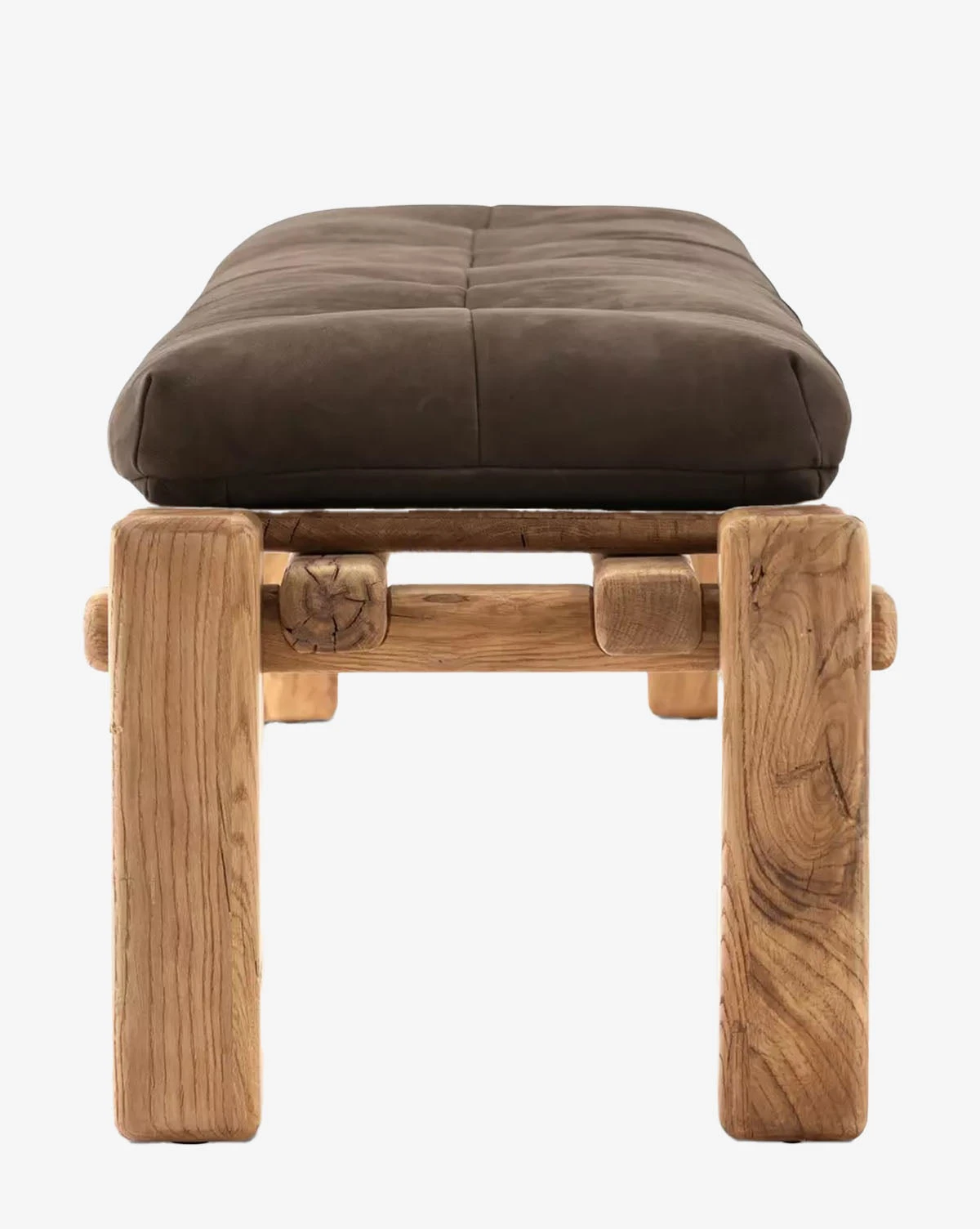 The Luella Bench combines top grain leather and reclaimed French Oak to create a stunning piece for your living room or bedroom. Featuring intricate natural details in its frame, the plush cushion upholstered in dark leather is comfortable yet sophisticated.