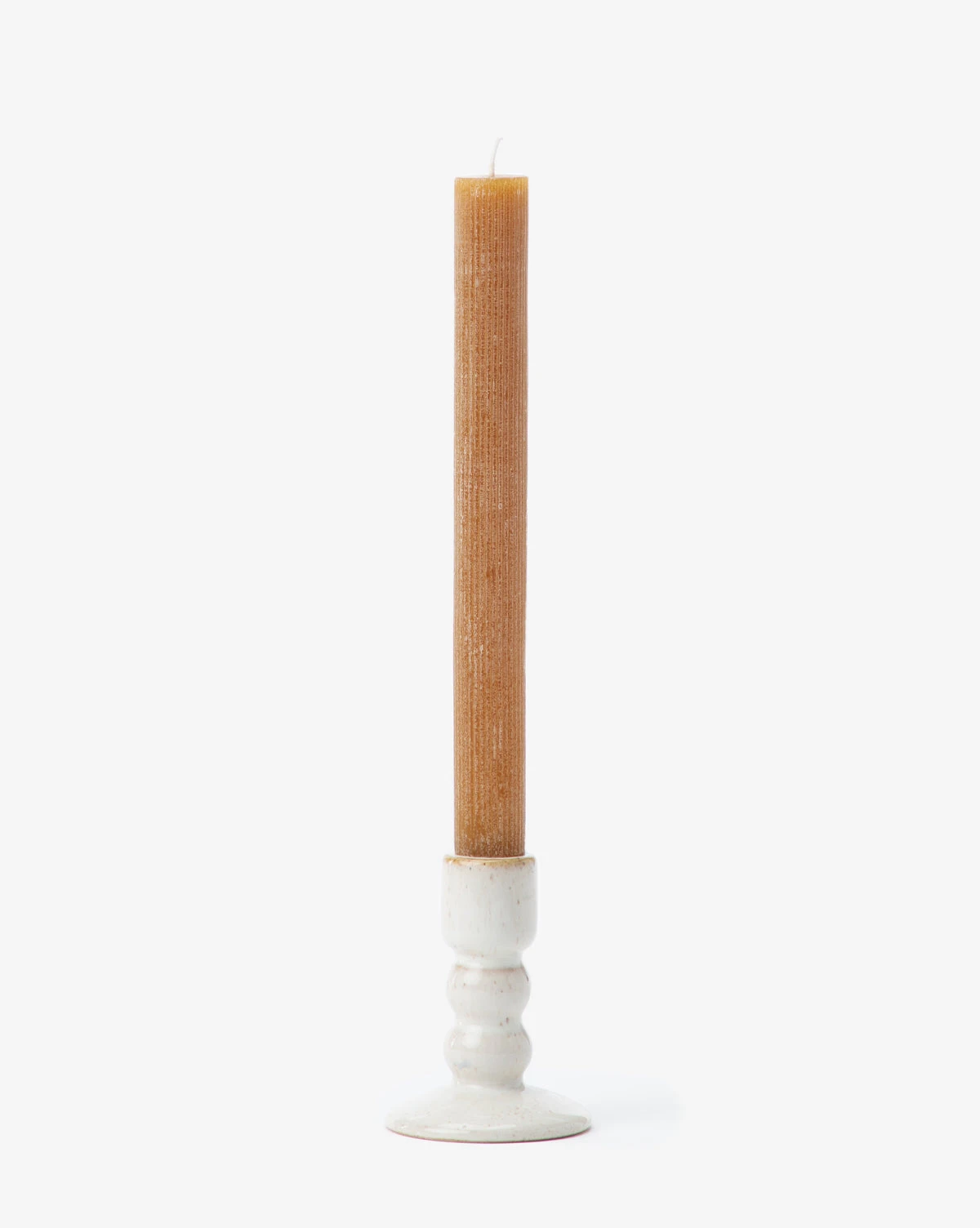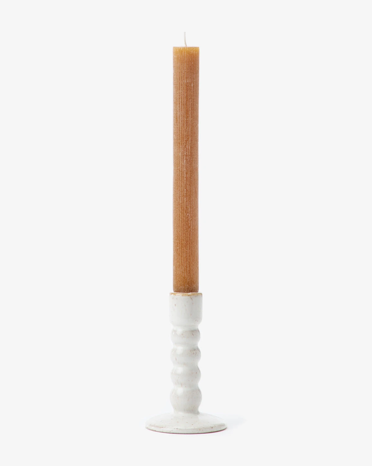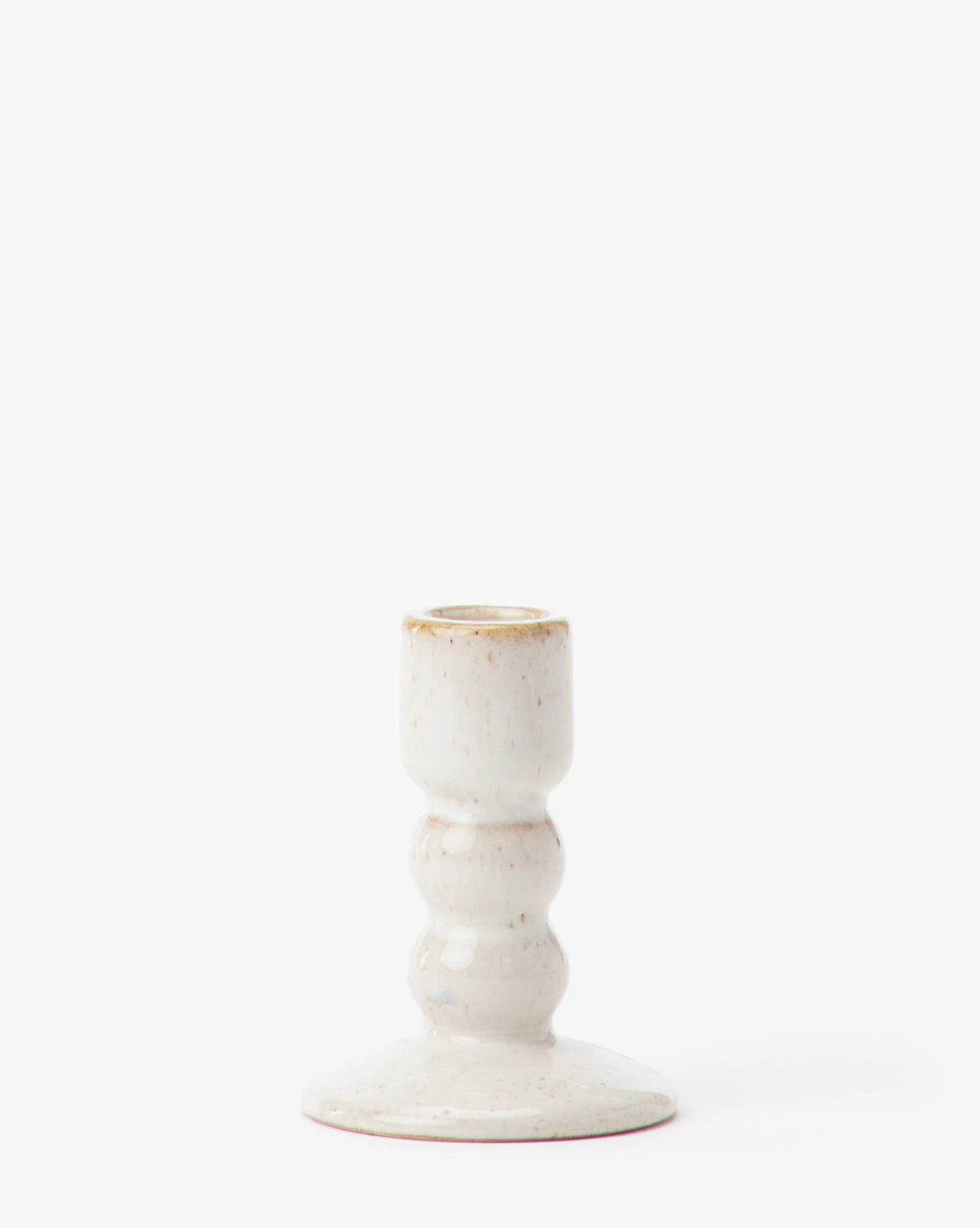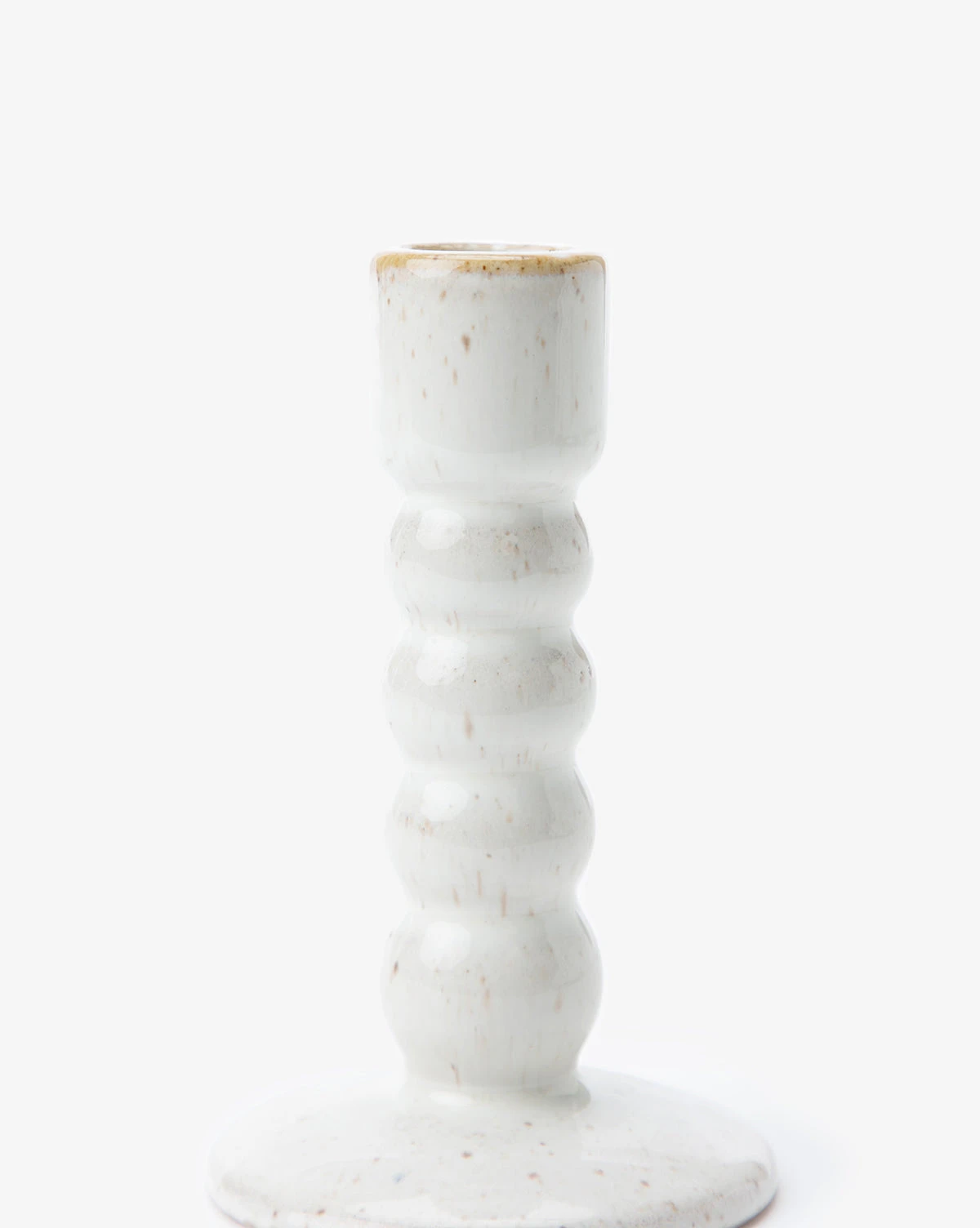 Crafted from stoneware with a hand-applied white glaze, the Mae Ceramic Taper Holder brings a classic feel and shapely personality to your mantel or console vignette. Its simple stacked shape brings subtle interest to your taper candles wherever they are styled.
