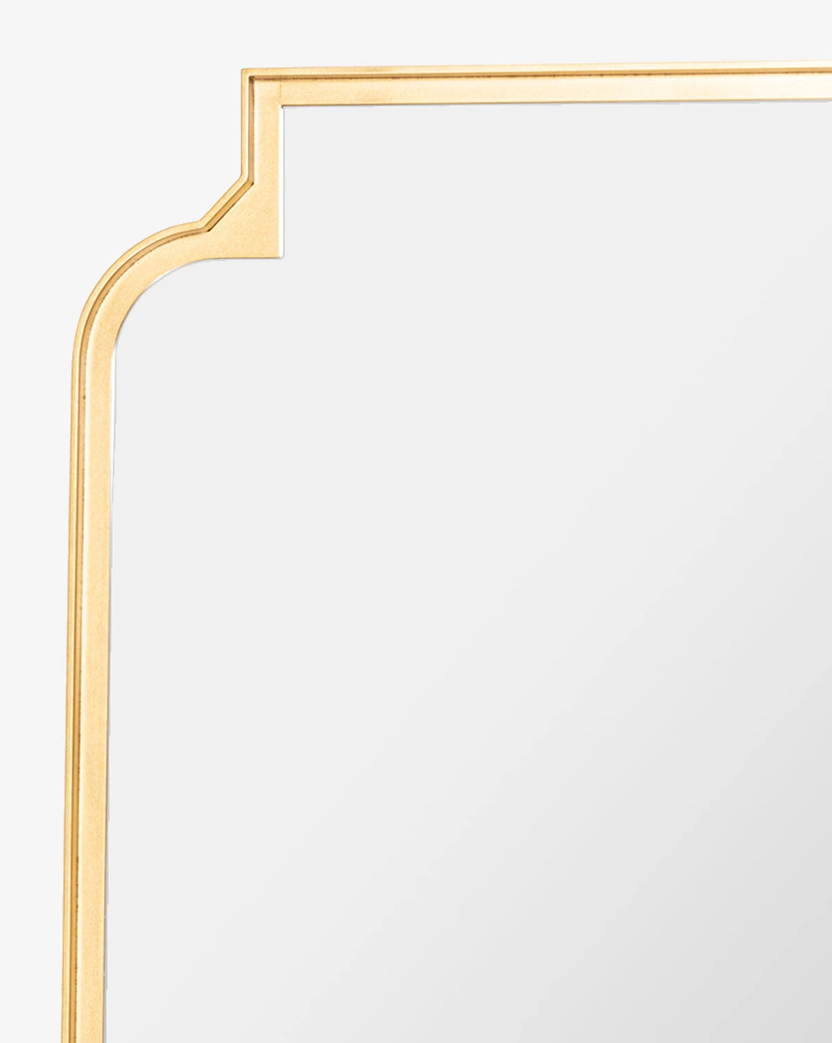 Nuanced and classic, the Magdalena Floor Mirror brings subtle elegance to any room. Shapely elements at the top of the frame add subtle detail and balance to the elongated shape of the floor mirror. With a rich gold finish, the mirror creates a welcoming feel in your space.
