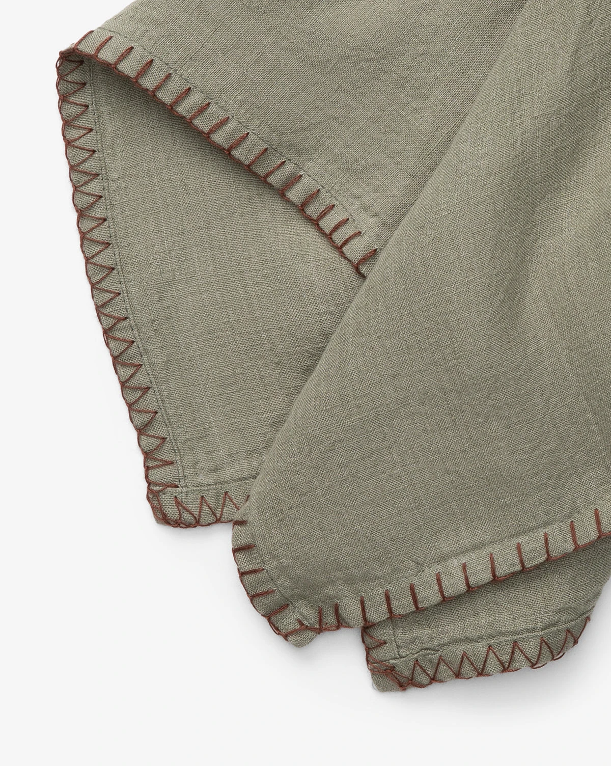 Classic and colorful, the Maggie Linen Napkins are made from 100% linen. Their simple design makes for easy tabletop styling, while their embroidered whipstick border adds subtle detail. Soft and enduring, the linen napkins are a timeless asset to your dining room.