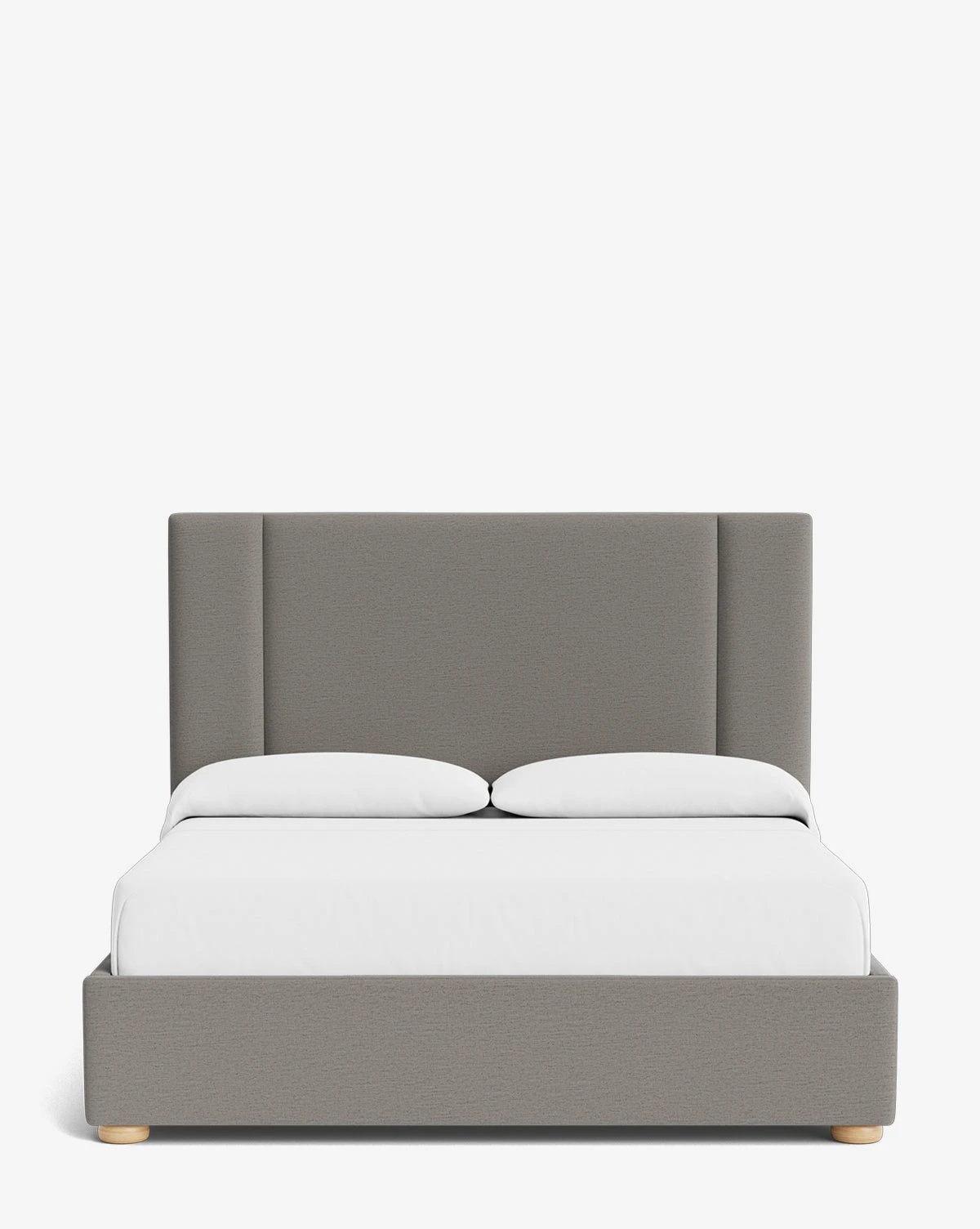 In a bench-made frame upholstered in your selection of high-end fabrics, the Mina Upholstered Bed is an updated take on classic design. With two streamlined channels that frame pillow vignettes and charming but subtle wood bun feet, the bed frame has a modern yet traditional feel.