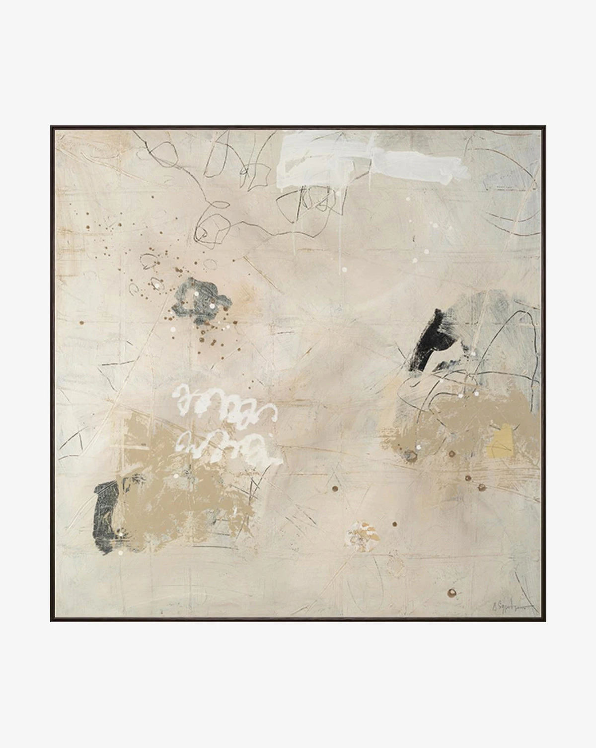 Abstract and tonal, this modern piece draws the eye with its unique use of color and shape. From the tonal brown palette, to the charcoal drawn unfinished lines this piece encourages you to use your imagination, while bringing warmth and color to your home design.