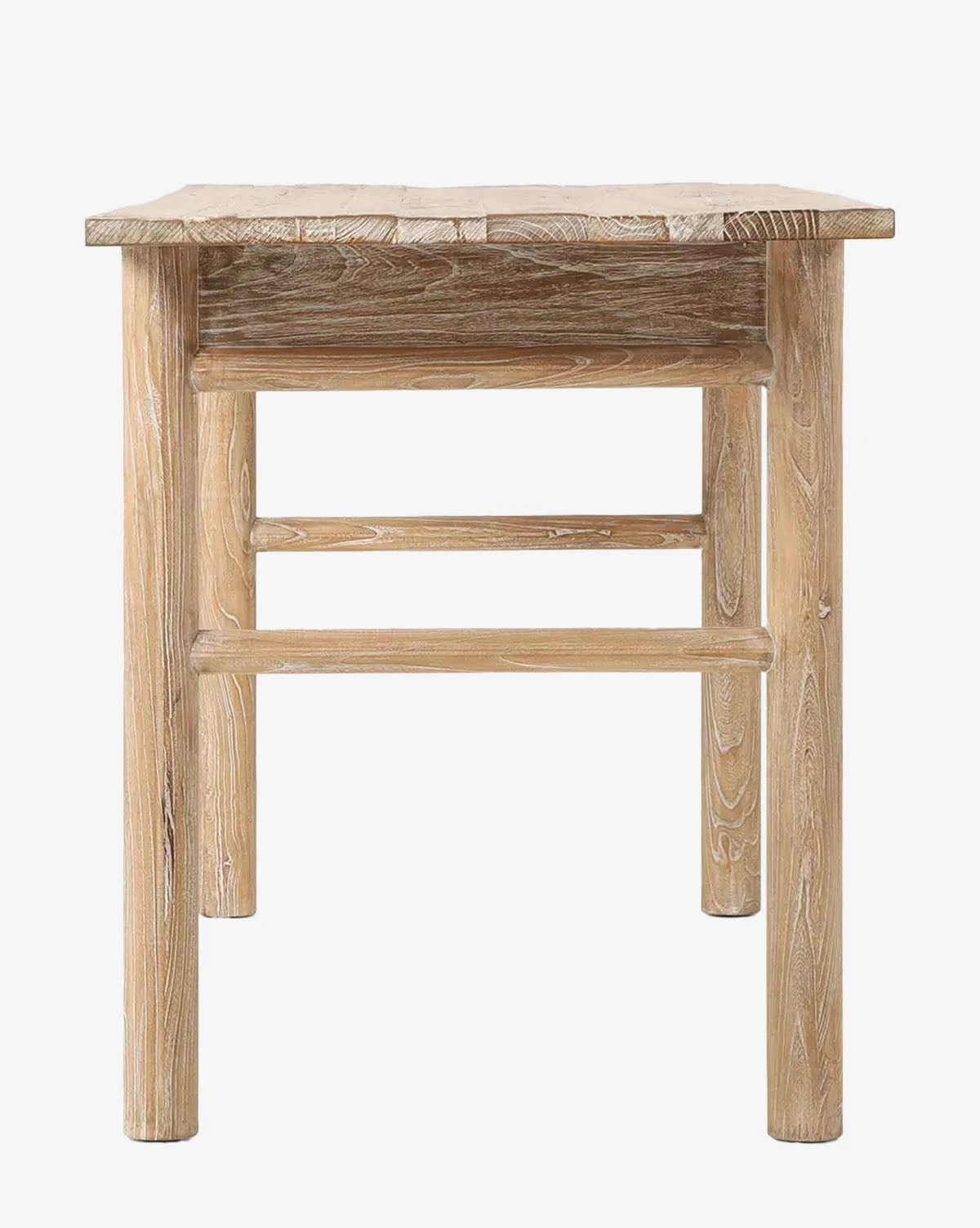 With a seamless blend of modern and traditional elements, the Nico Desk is made from solid reclaimed elm with a whitewash finish. The organic graining on the desk gives subtle texture to any office, while the stately structure adds approachable sophistication.