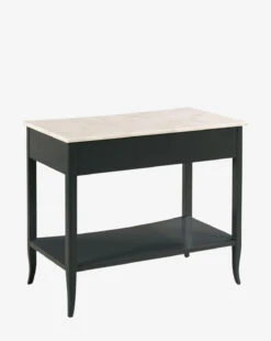 From its stone tabletop to its curved structure, the Noely Nightstand is all about the details. A wood nightstand with a coal finish, its open shelf and spacious drawer lend practicality to your room, while its intentional design elevates your decor.