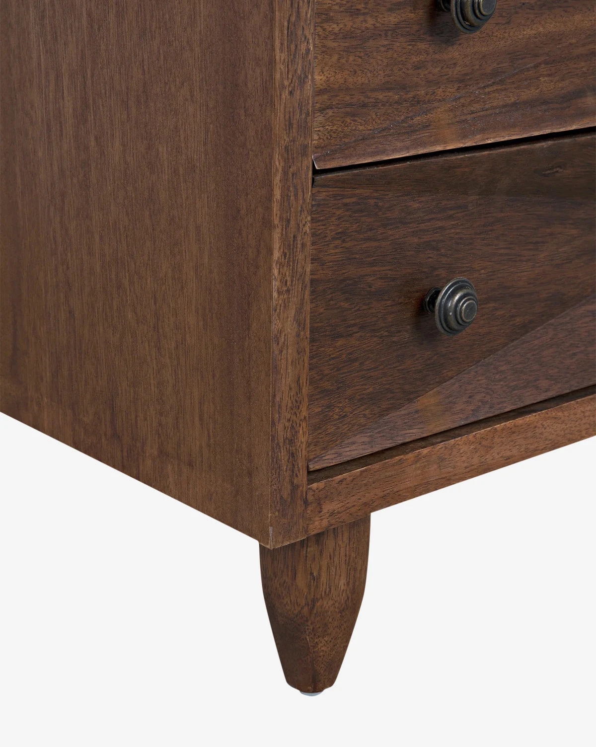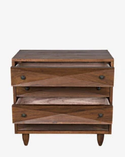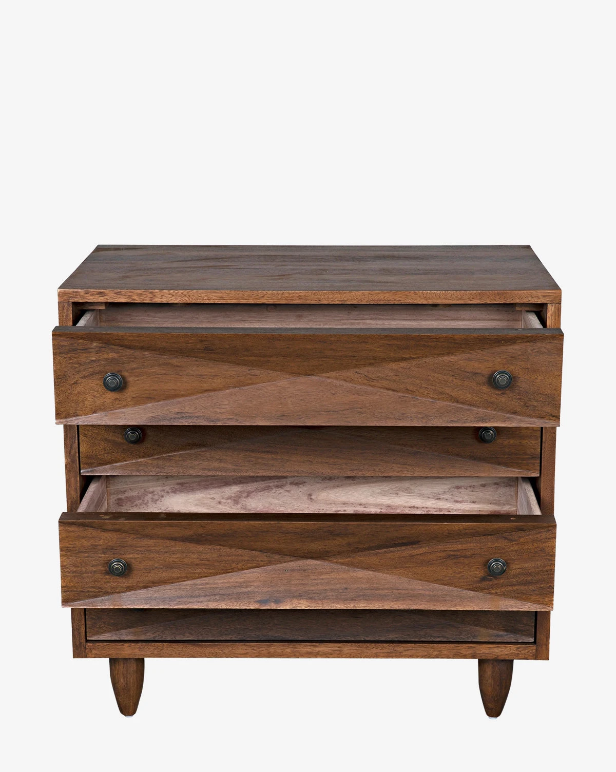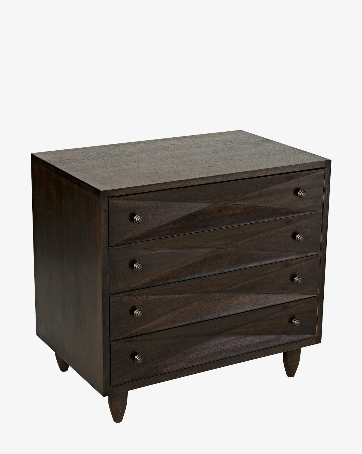 The Quinn Diamond chest plays with perspective in its multidimensional face that will immediately create an exciting vignette however it’s styled. Expertly crafted from walnut in three gorgeous shades, this wood was specifically chosen for its organic color and even grain.Â