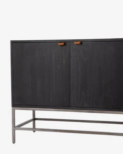 Featuring plenty of hidden storage and a sleek, modern feel, our Noland Sideboard elevates your living space or entryway design with its streamlined silhouette. Crafted from a modern mix of materials, its deep poplar and iron construction get a touch of visual contrast from the cognac leather pulls.