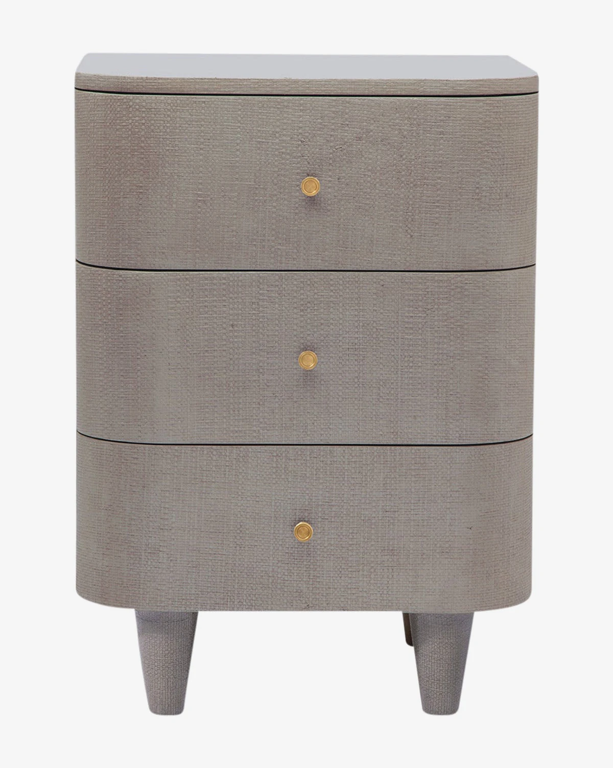Covered in hand-stamped faux rafia, the Olinda Nightstand brings modern detail to classic bedroom furniture. Simple brass pulls add refined detail to the two drawers, displaying the nightstands thoughtful design.