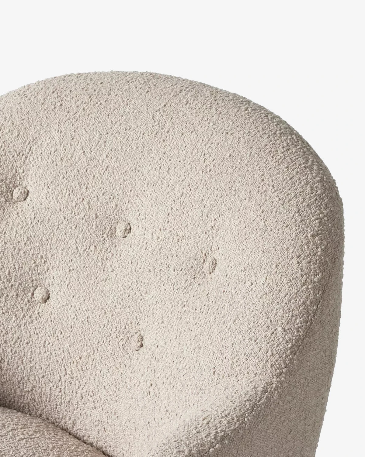 The Olivette Chair reimagines a traditional design with subtly modern details. Crafted to bring a luxurious feel to your space, its seat is upholstered in either a sand or mink boucle-like fabric and complemented by dark wood legs.
